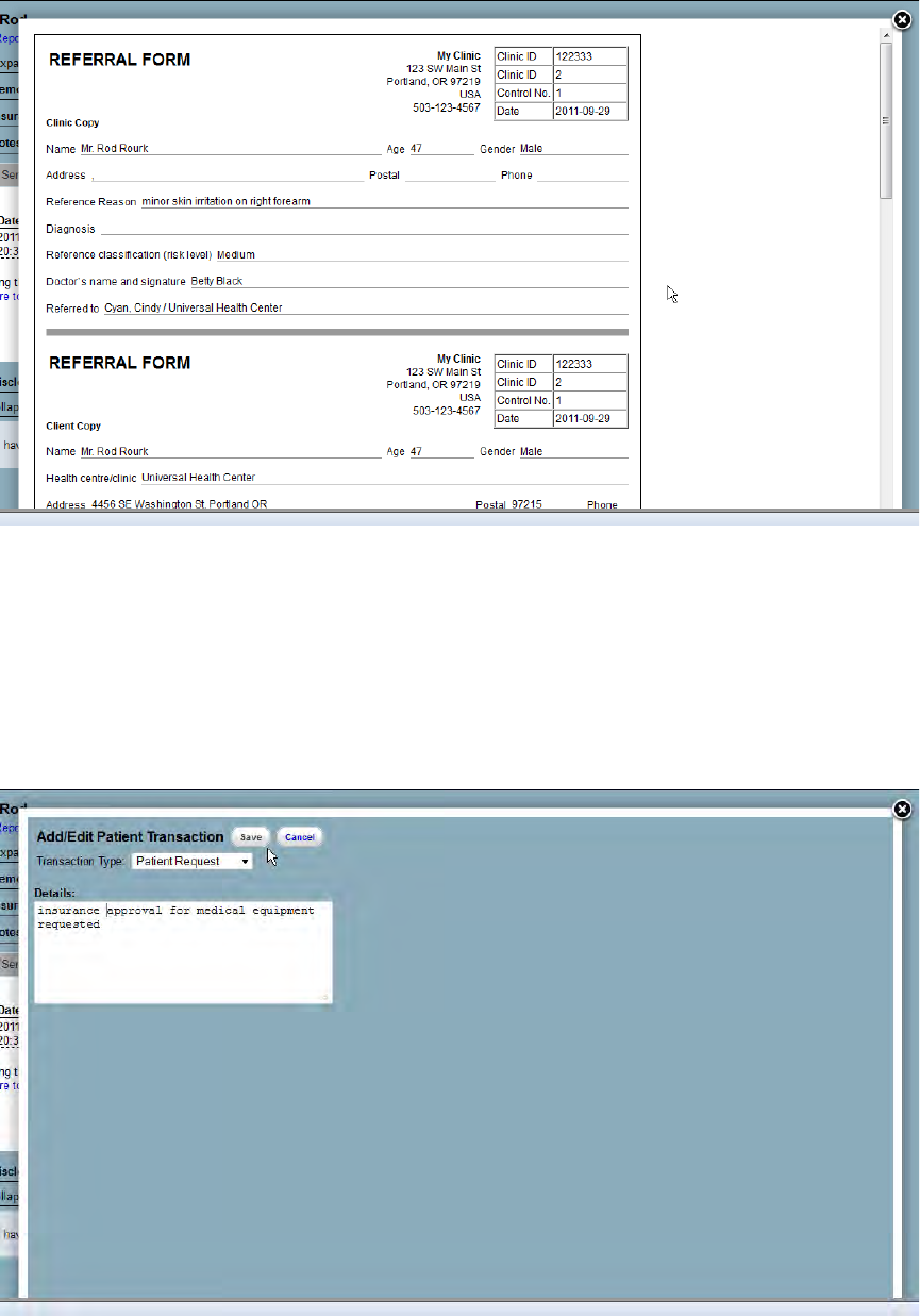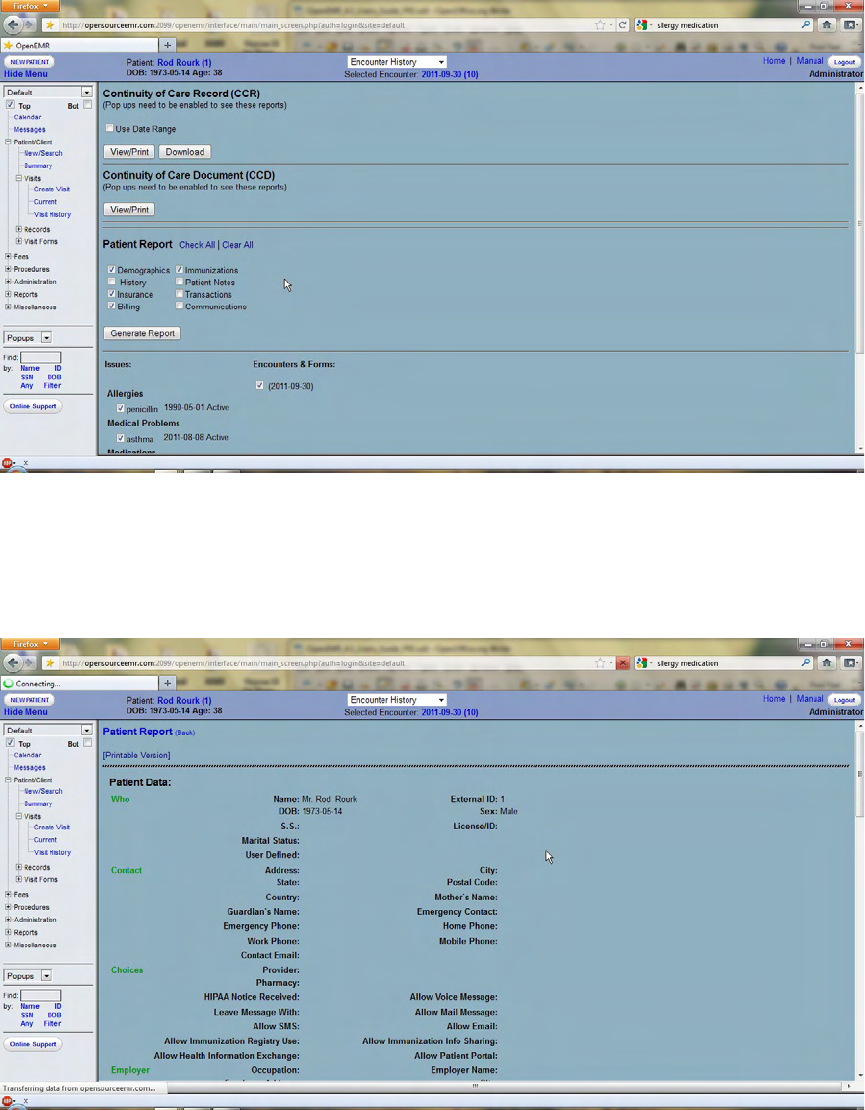 When a patient is active within the system, the user has the option of generating a report for that specific