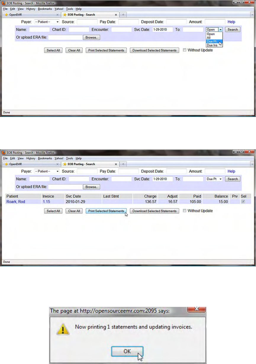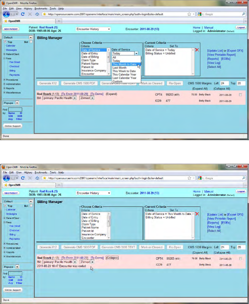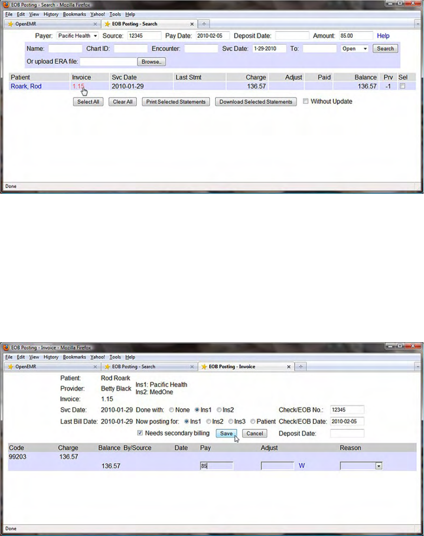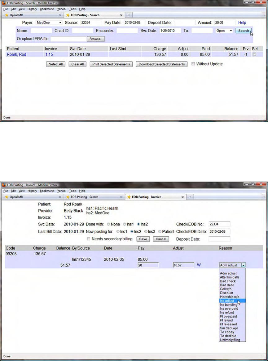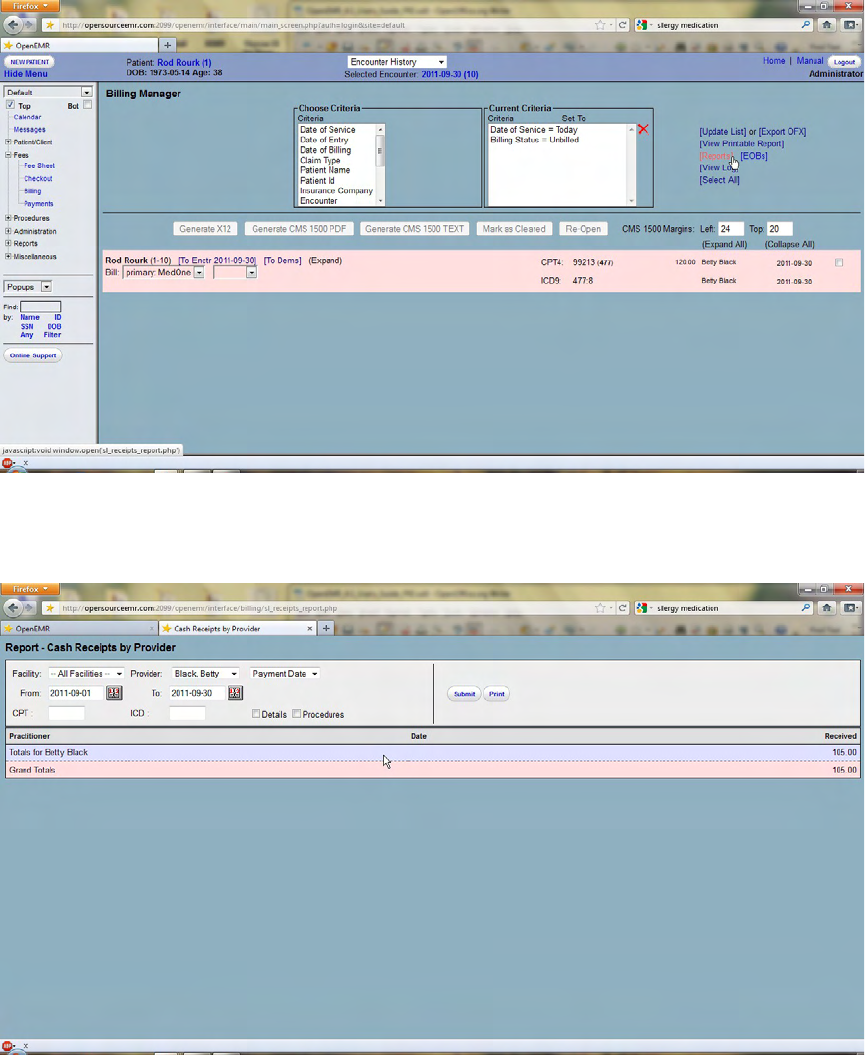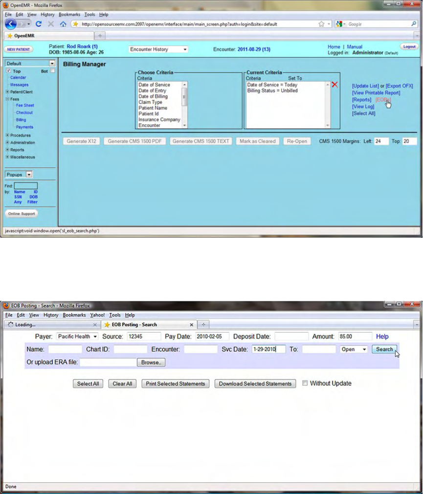 Once payments from the insurance companies have been received and entered, you can use OpenEMR's EOB