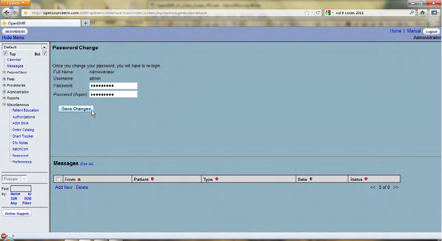 Note: If you are using the OpenEMR demo instance, please do NOT change the admin password!