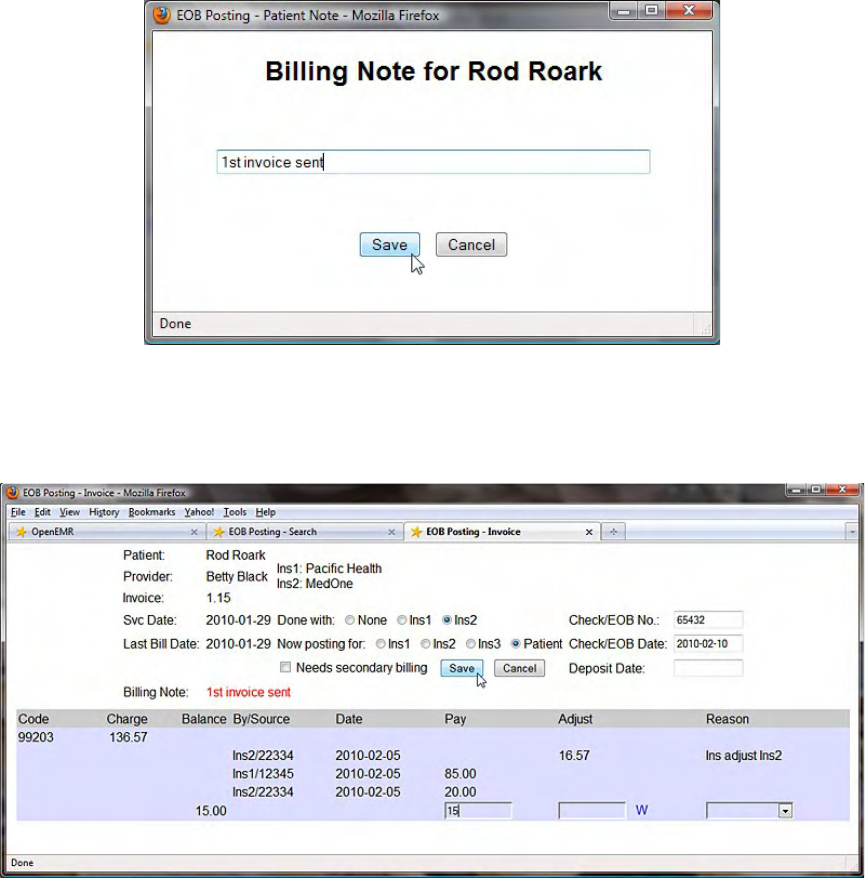 billed to the secondary insurance. Select 'Done with Ins1' above to indicate that the primary insurance EOB has