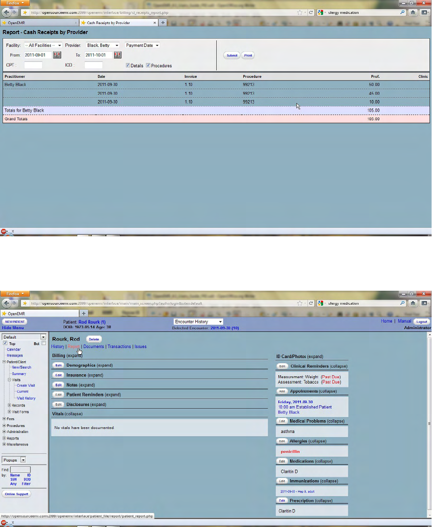 The user can also elect to see a detailed breakdown of cash receipts, itemizing each procedure for which a