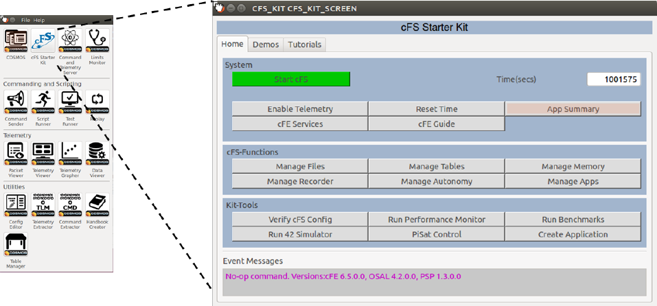 2. After I start the cFS it seems to run fine, and I see event messages in the terminal window, but I