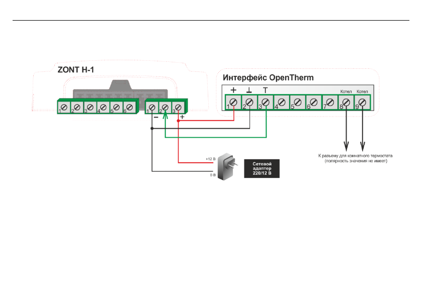 Подключение термостата ZONT H-1 к газовому котлу через Интерфейс OpenTherm
