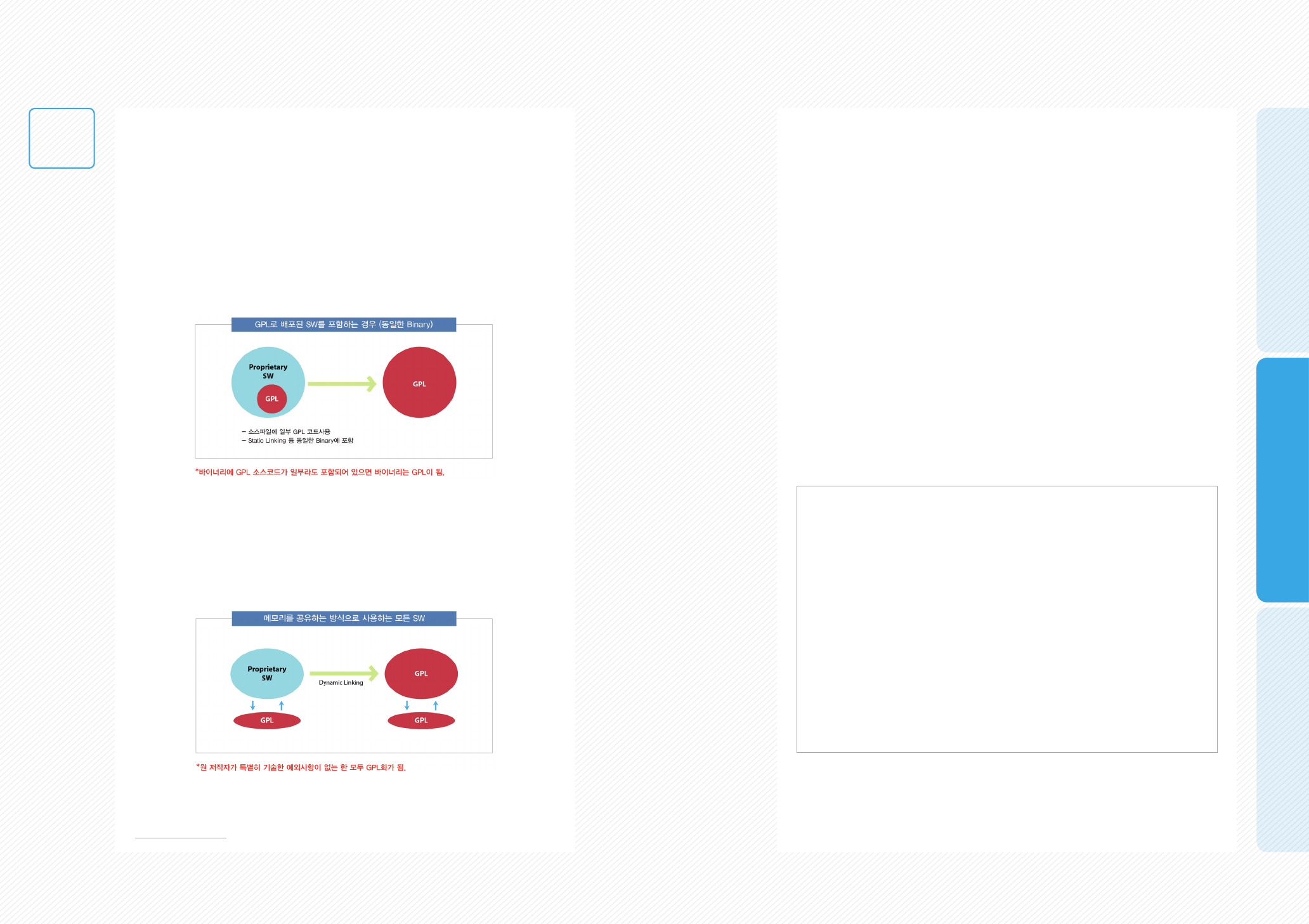 결합 정도에 따른 GPL 적용 범위의 구분 기준을 제시하고 있습니다. 예를 들어, 프로그램의