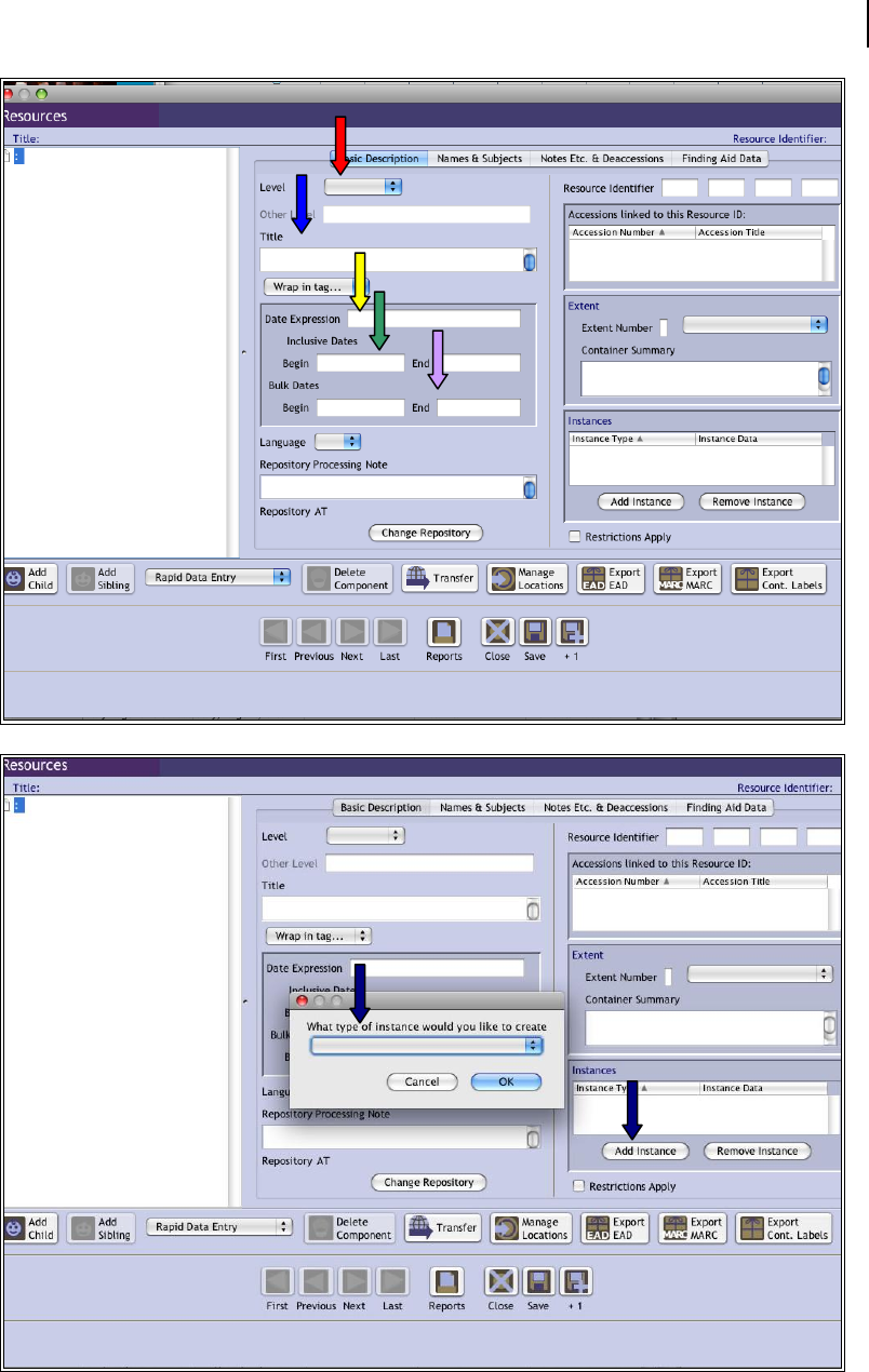 Step 5: Add level (series, subseries, file) to create hierarchy, and instance type (text,