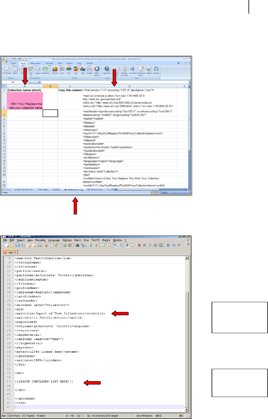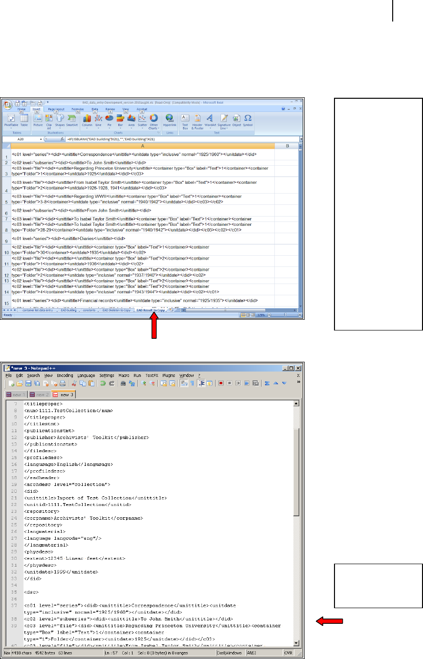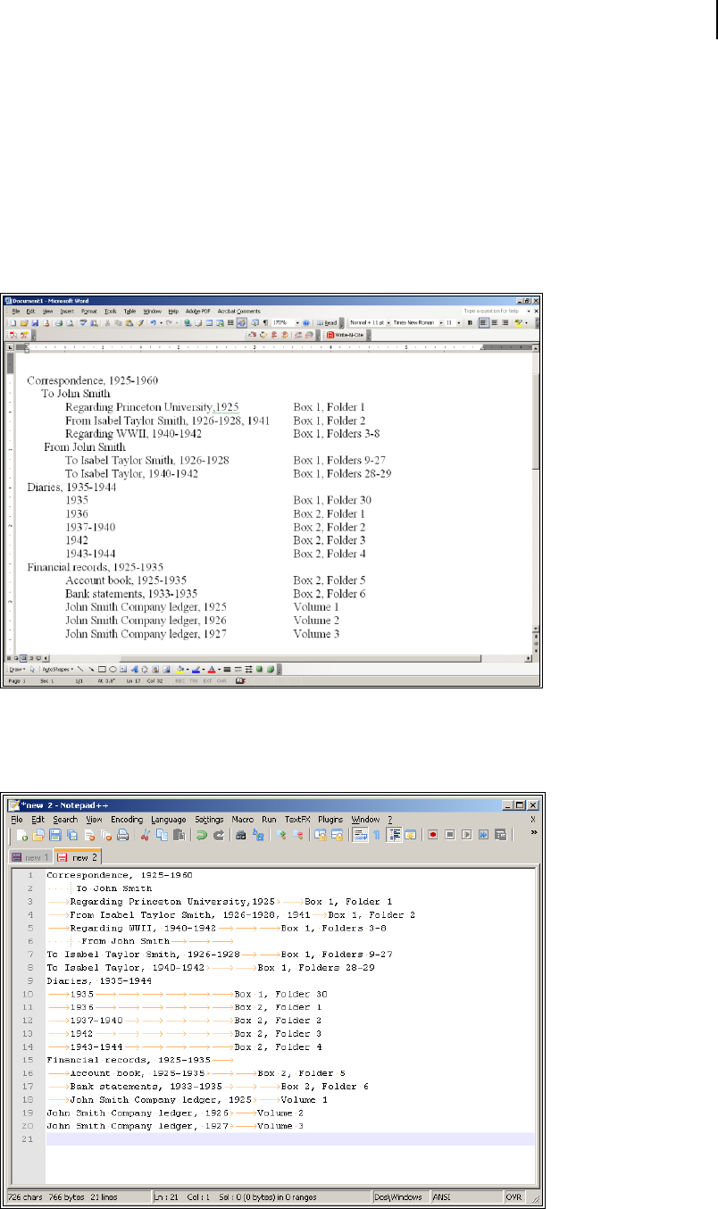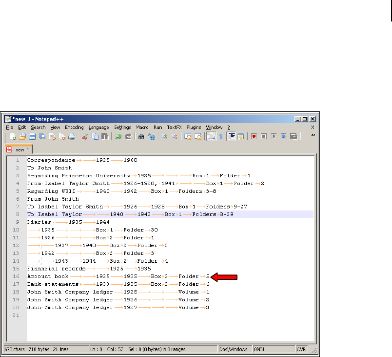 container list of an electronic finding aid into Notepad++. (If starting with an MS Excel