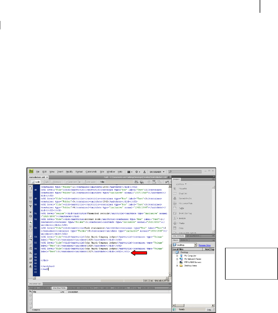 Archivists’ Toolkit). In the editing software, “validate” the XML code in order to