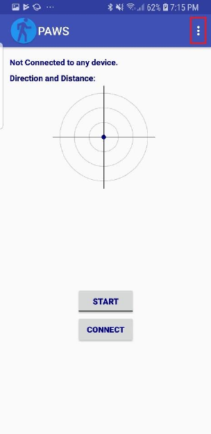 To connect the smartphone application to a PAWS headset via Bluetooth, press the “Connect”