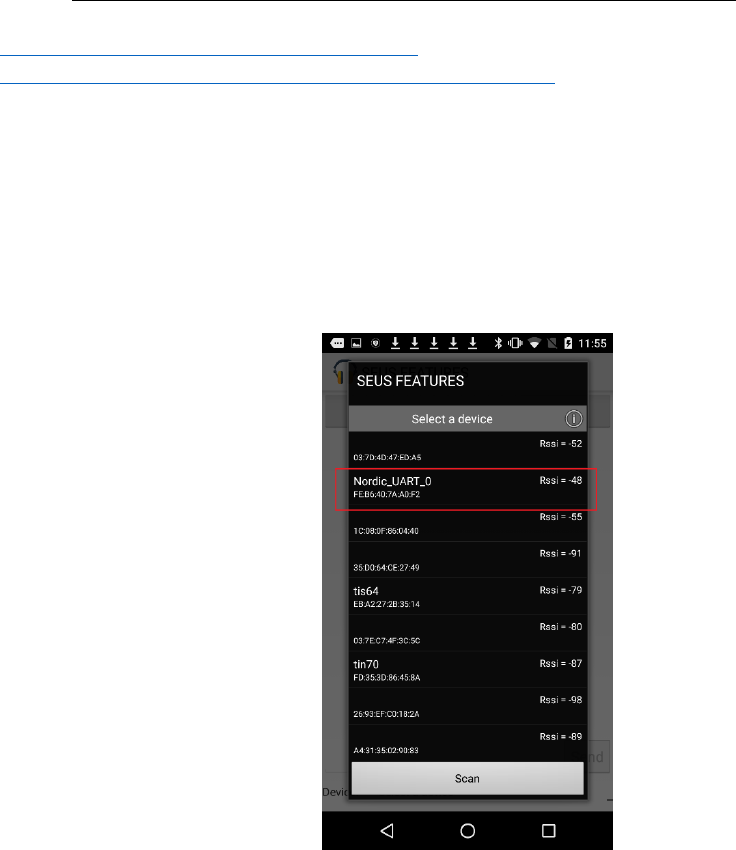 Install the SEUS Features application (Android Studio project files located: