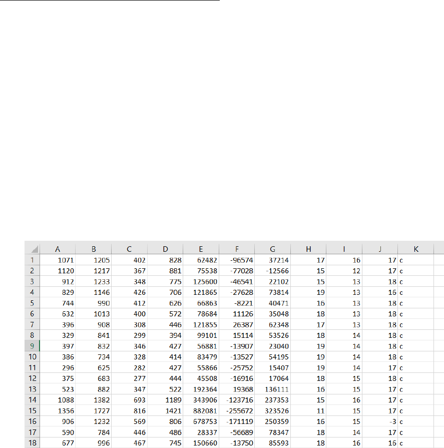 • Copy “[UNIX TIME]power.txt” into columns 5 – 7 in “carDistWeka.csv”
