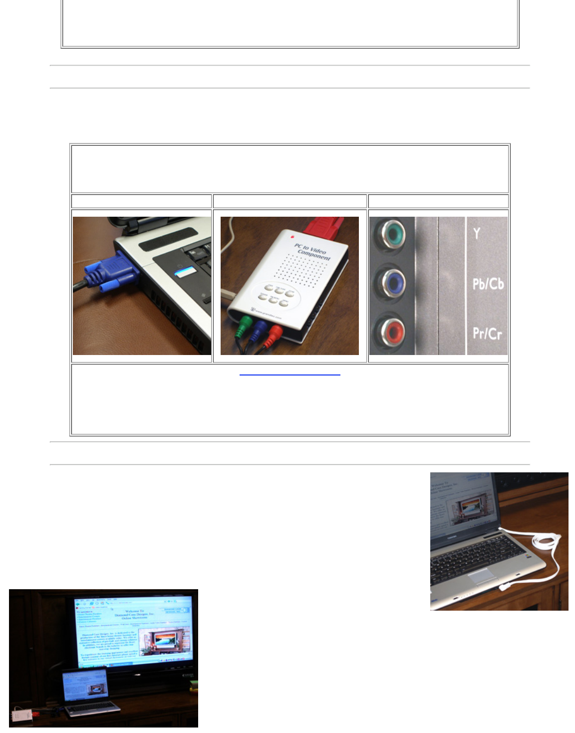 Here we will show you several different "computer to TV cables" as well as a specialized device that will work for just about any TV or