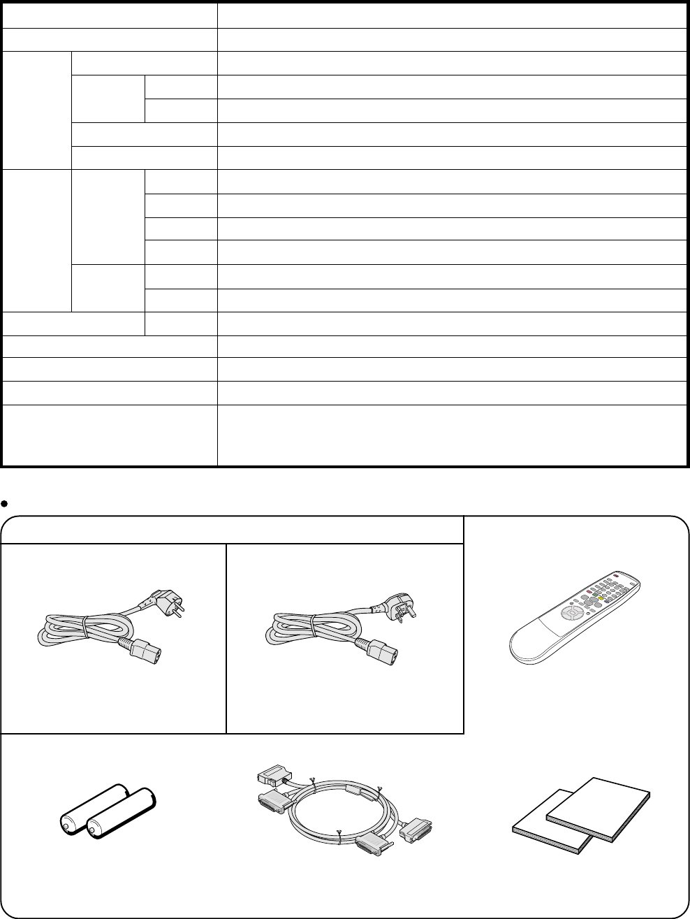 Accessories Power Cord, Remote control unit, Two AA size batteries, System Cable,