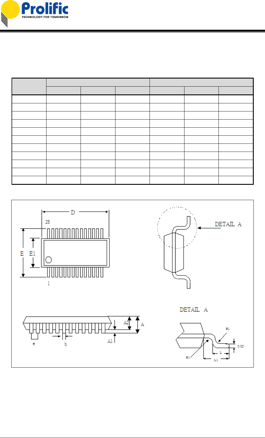 Figure 9-1 Outline Diagram of PL-2303HX (Chip Rev A) SSOP28