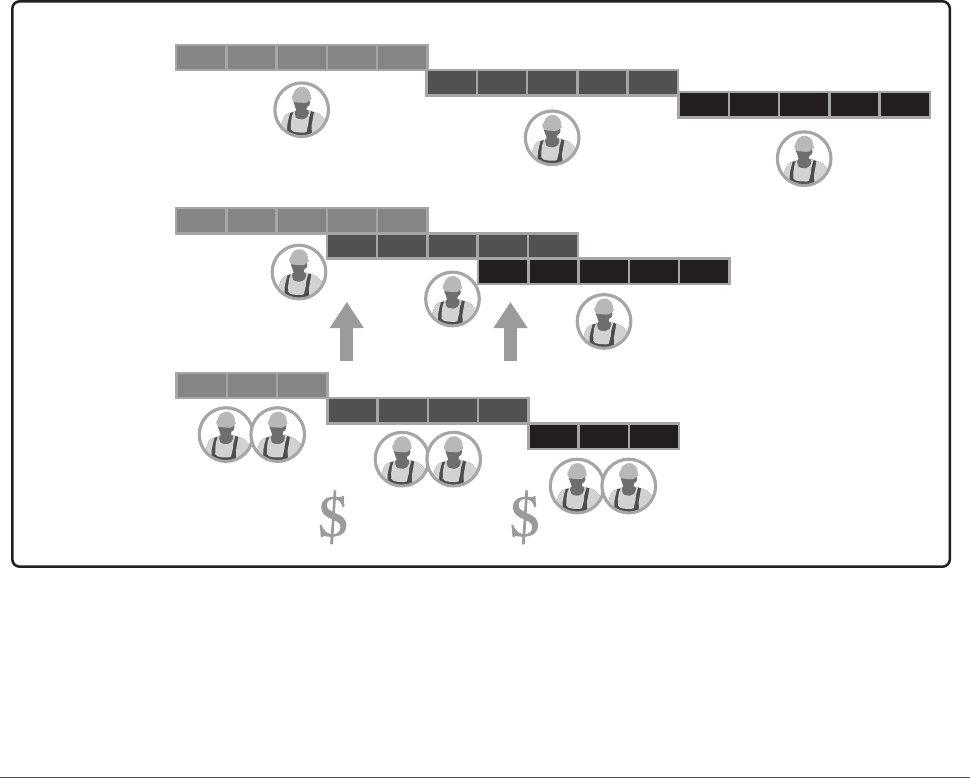 y finalización de las actividades se ajustan para equilibrar la demanda de recursos con la oferta disponible. Véase
