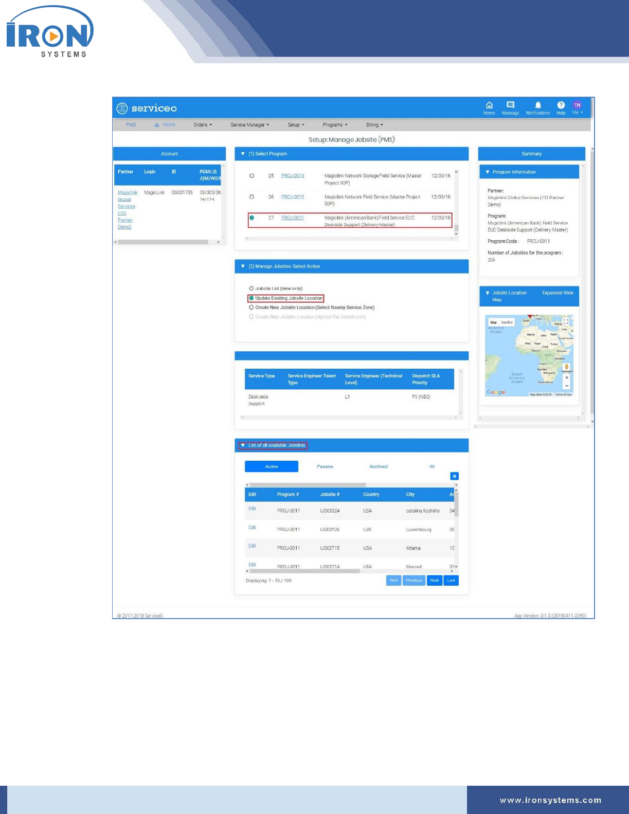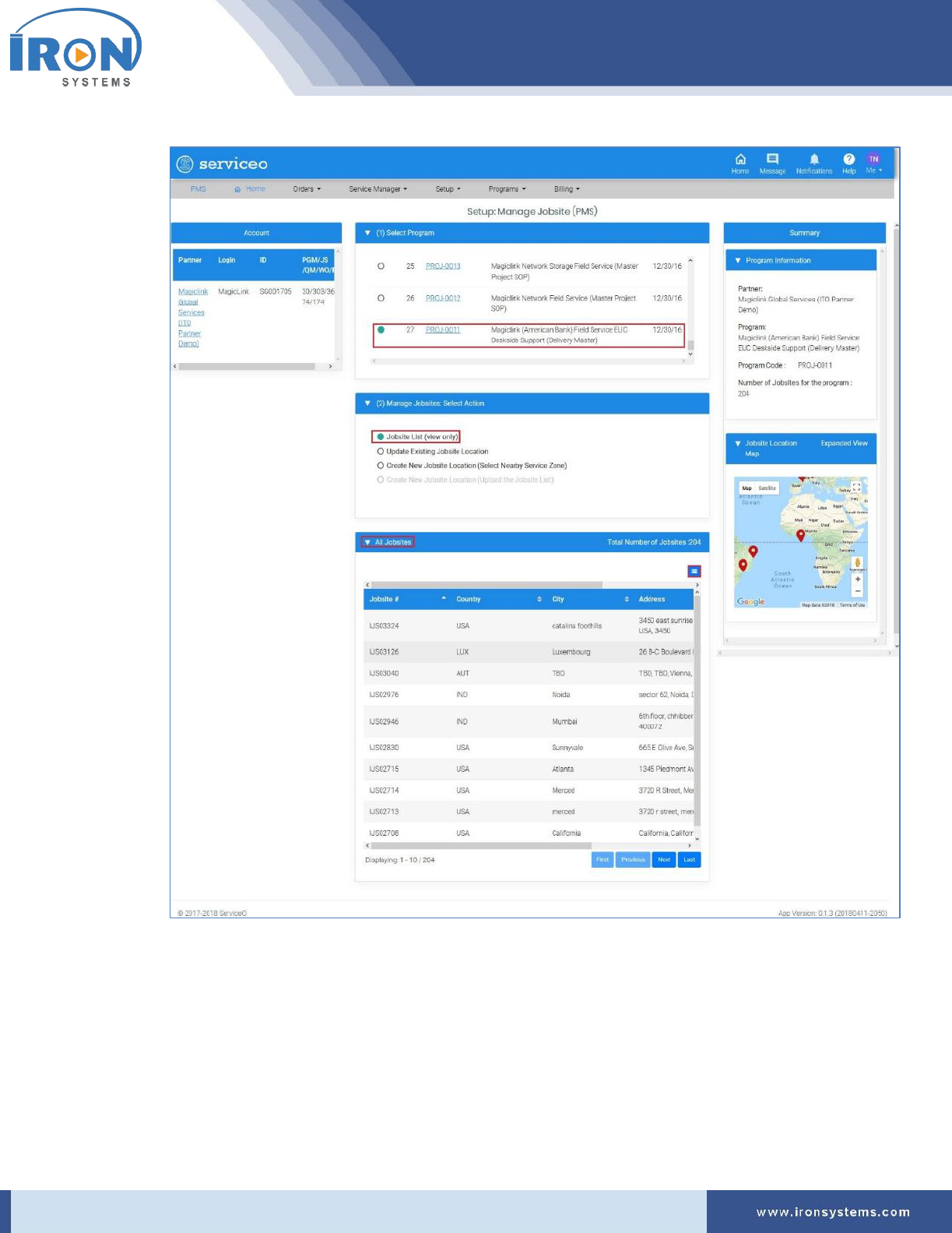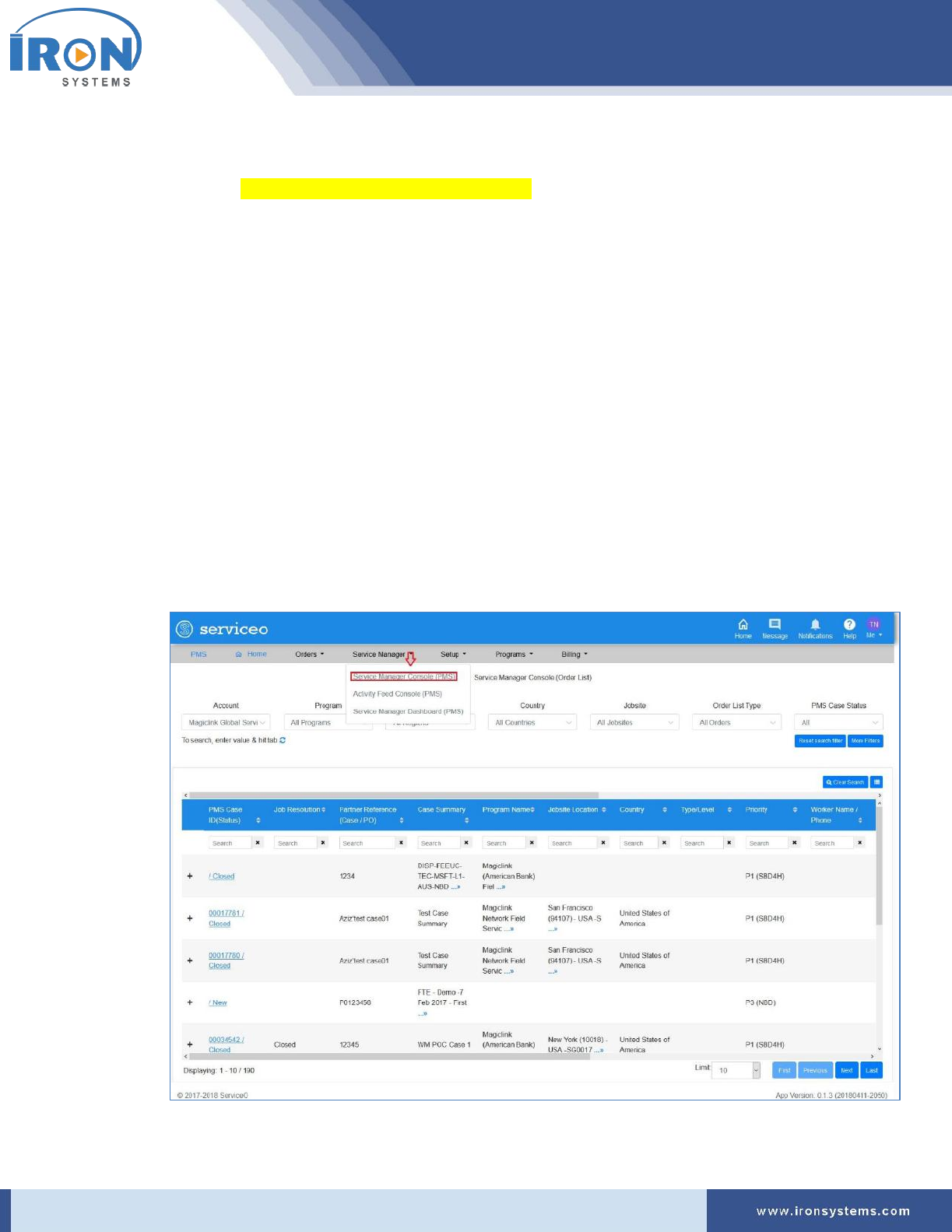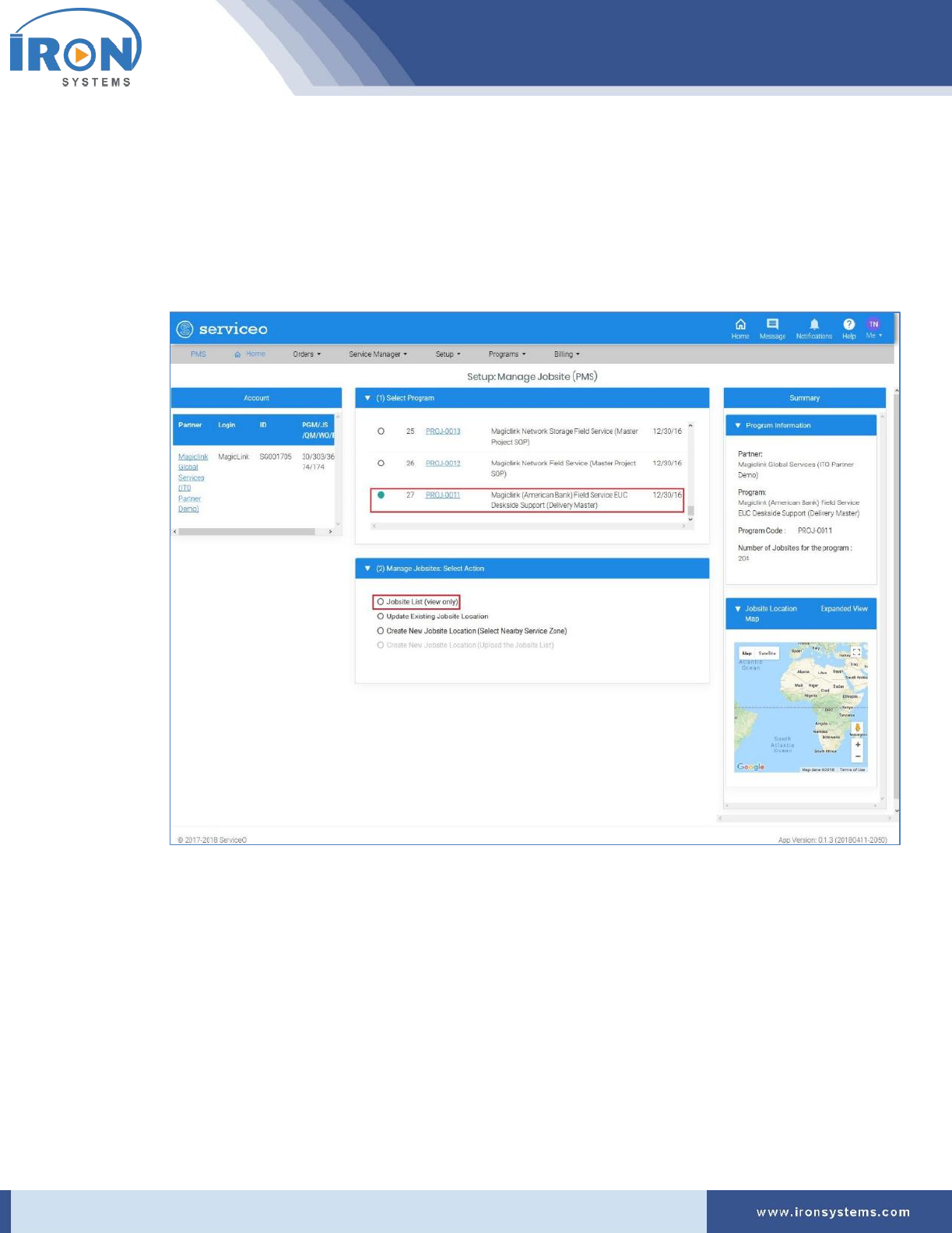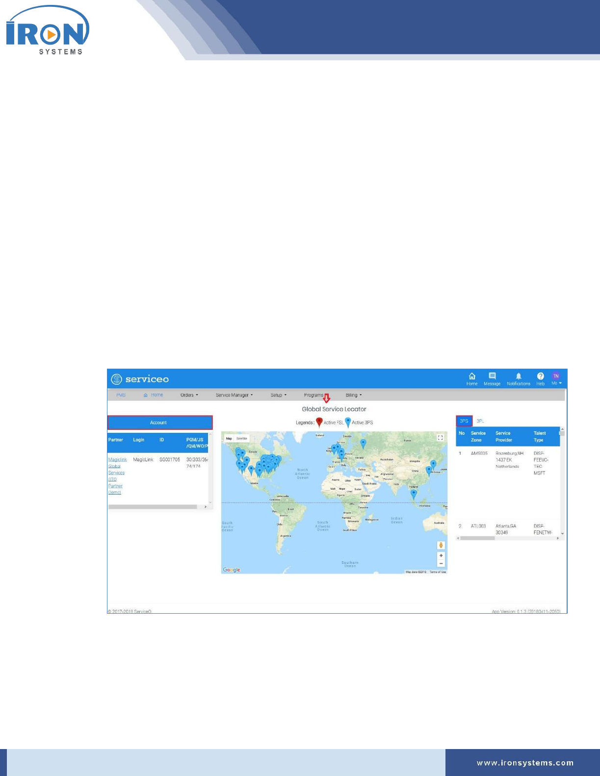 Click Programs → IRON Global Service Locator (PMS):
