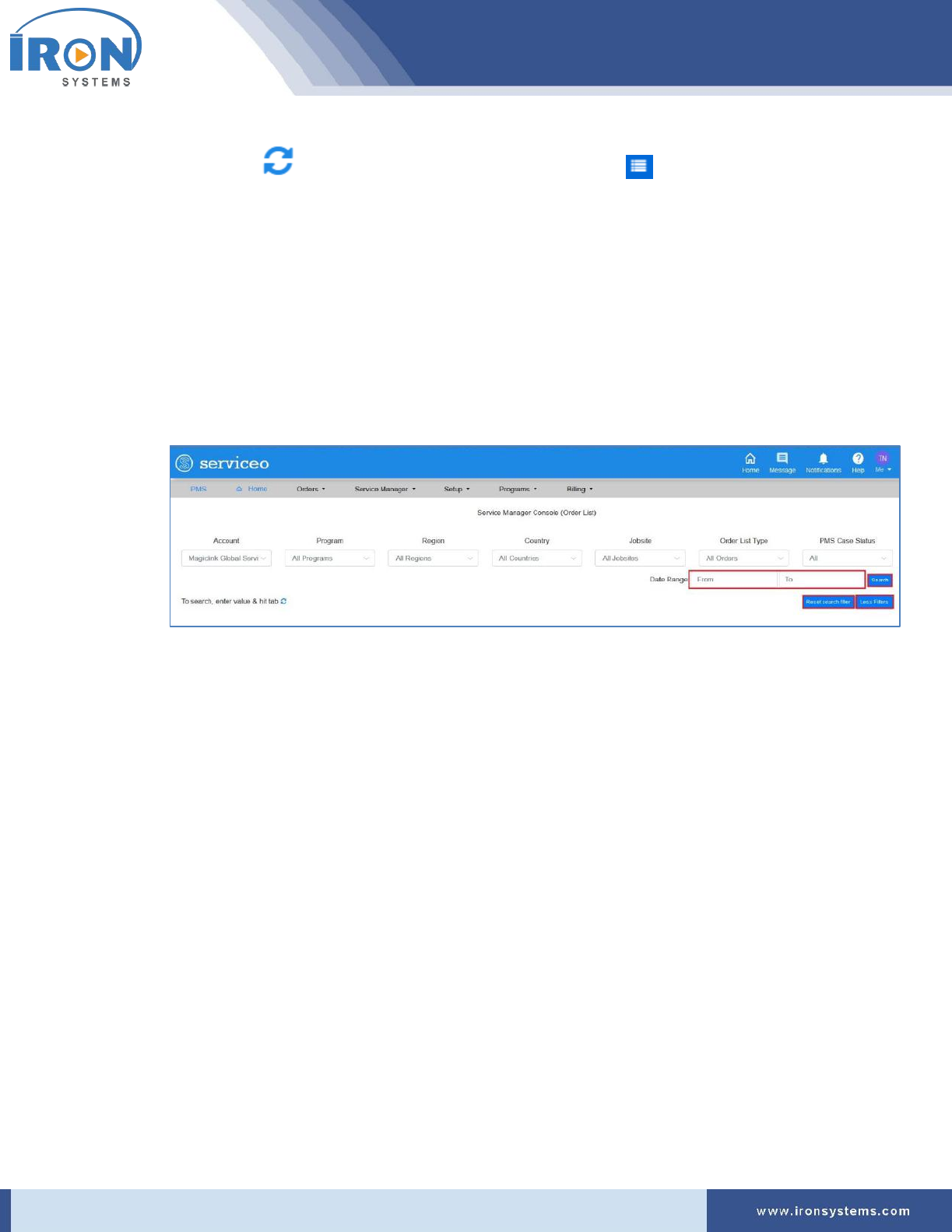 Figure 5.1: Service Manager Console (Order List) screen ........................................................................... 24