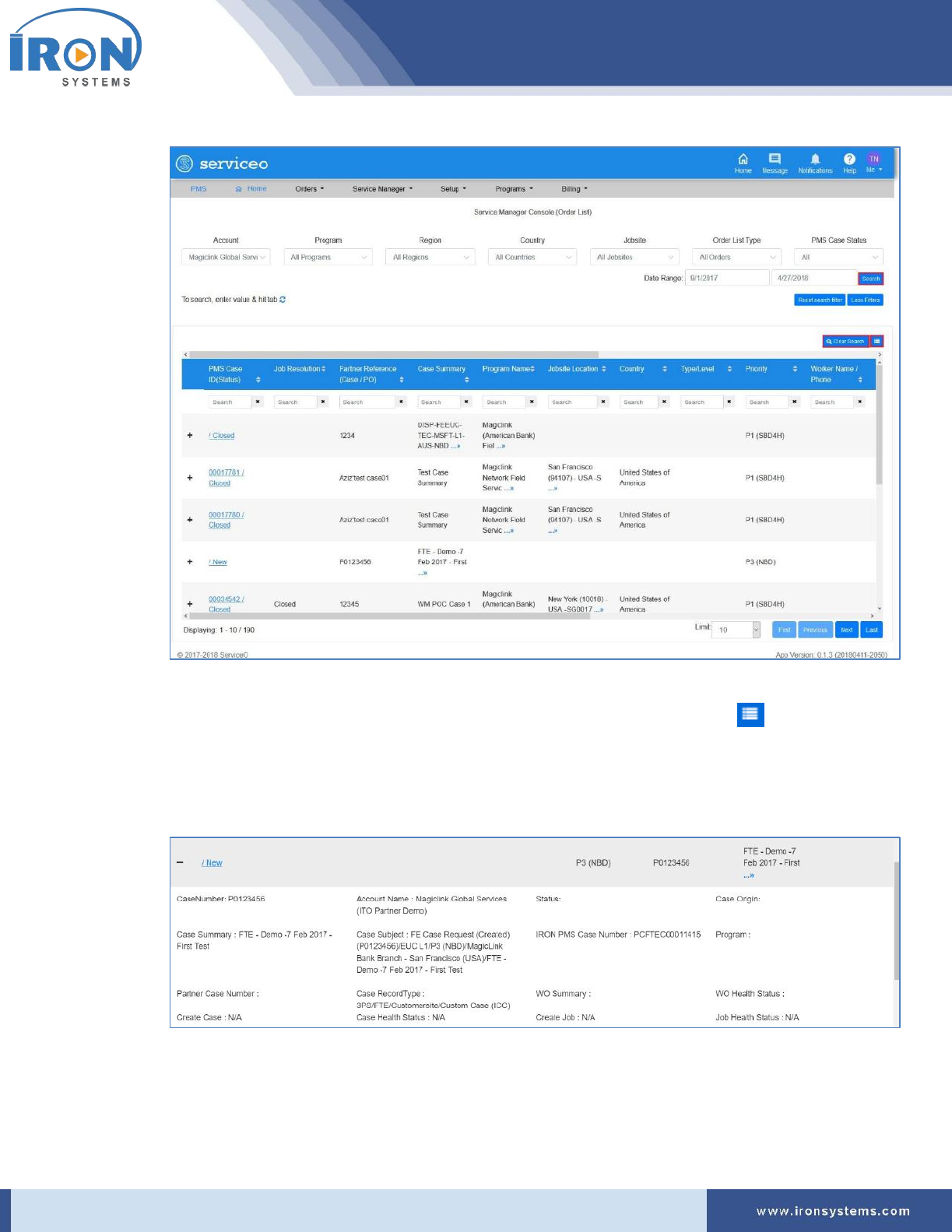 Figure 5.2: Service Manager Console (Order List) screen – Search Results ................................................ 26