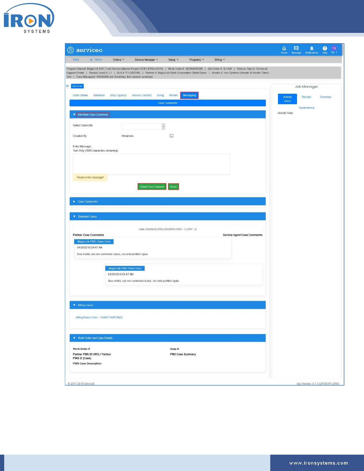 Case Order Status (Job Manager →