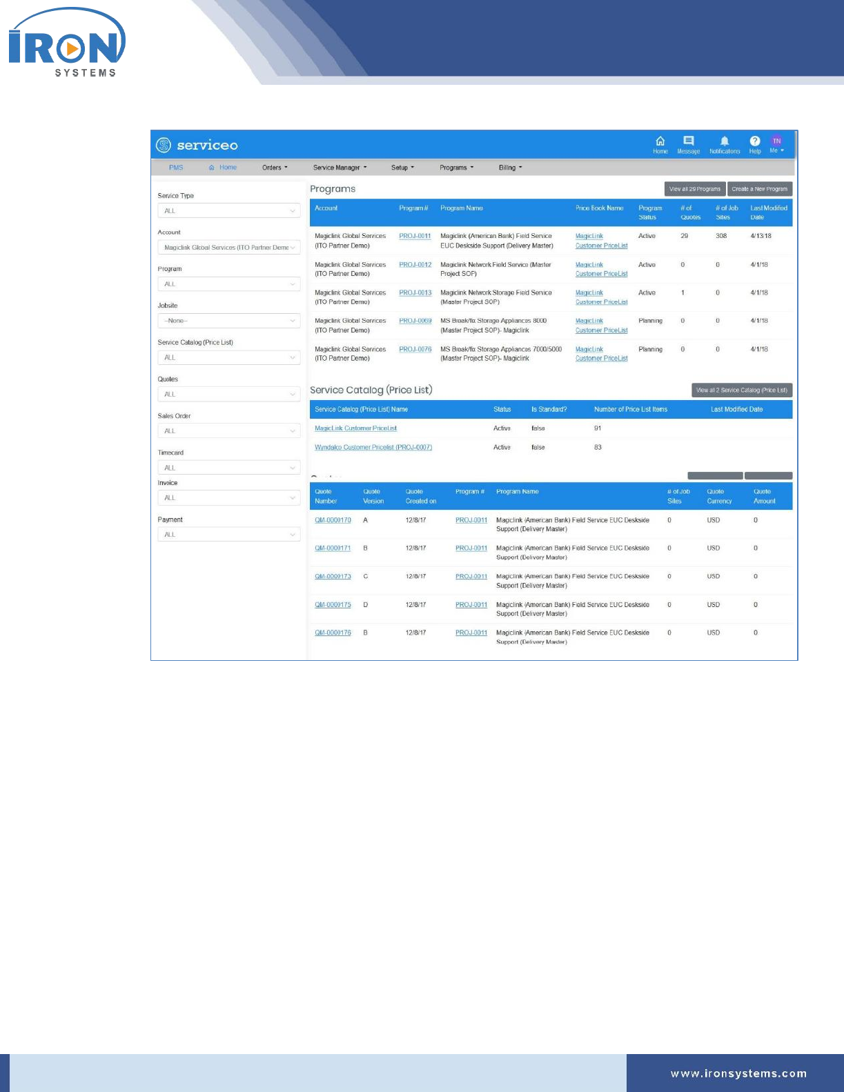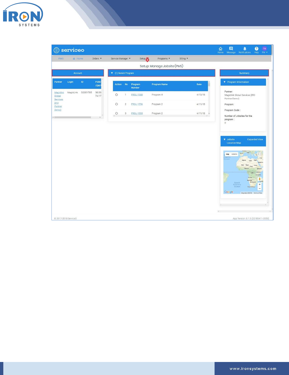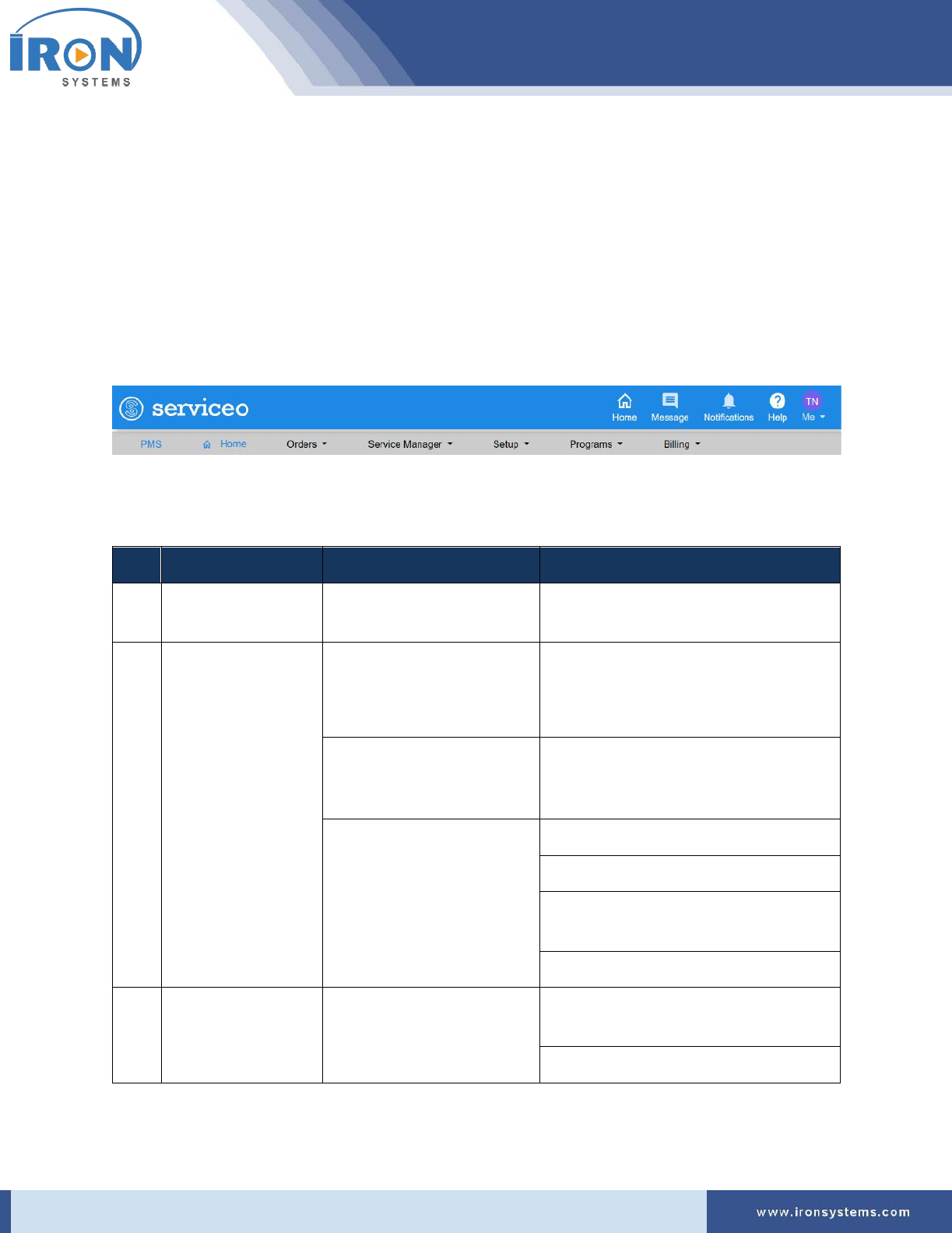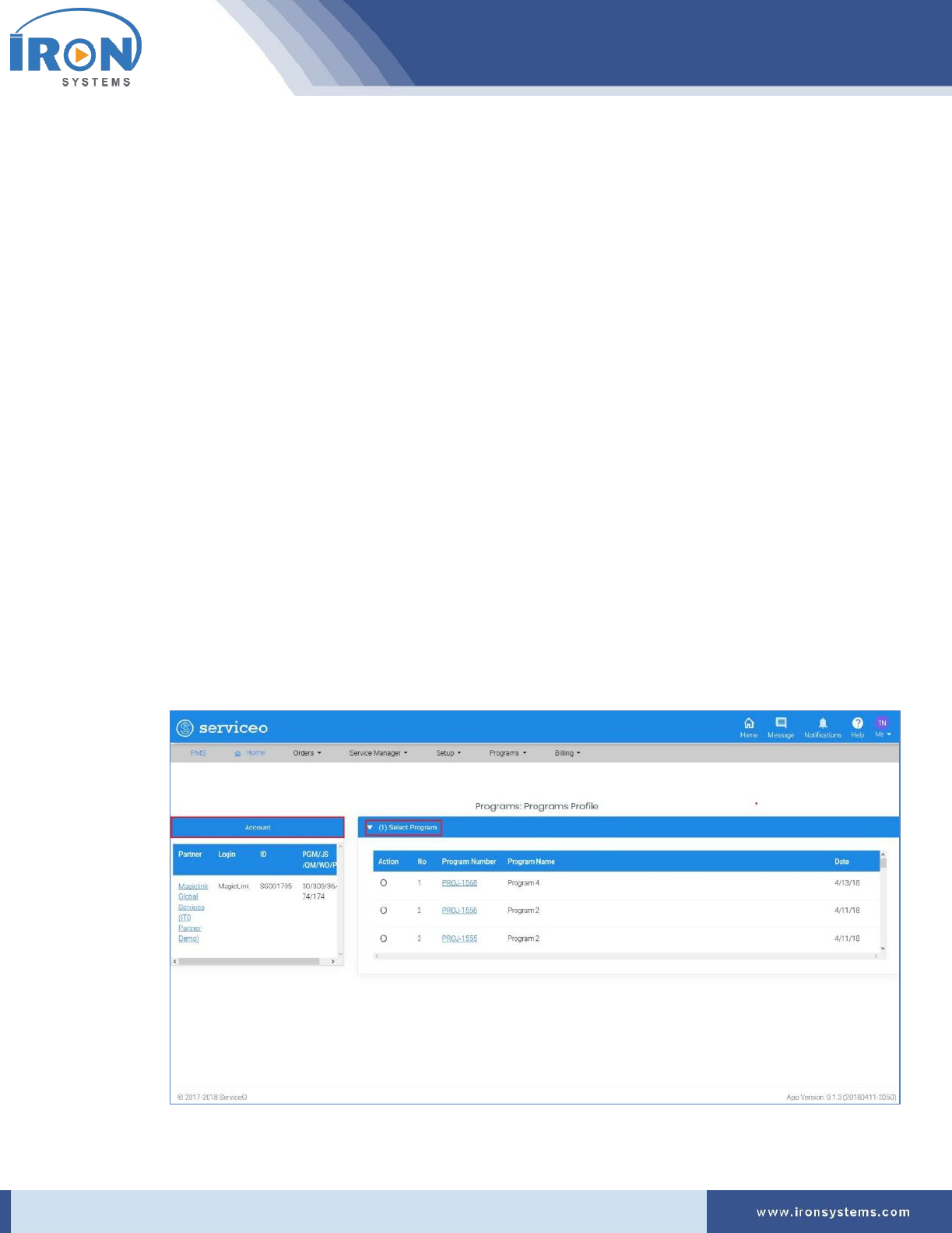1. Click the Programs located next to the PMS Home icon and then click IRON Global Service