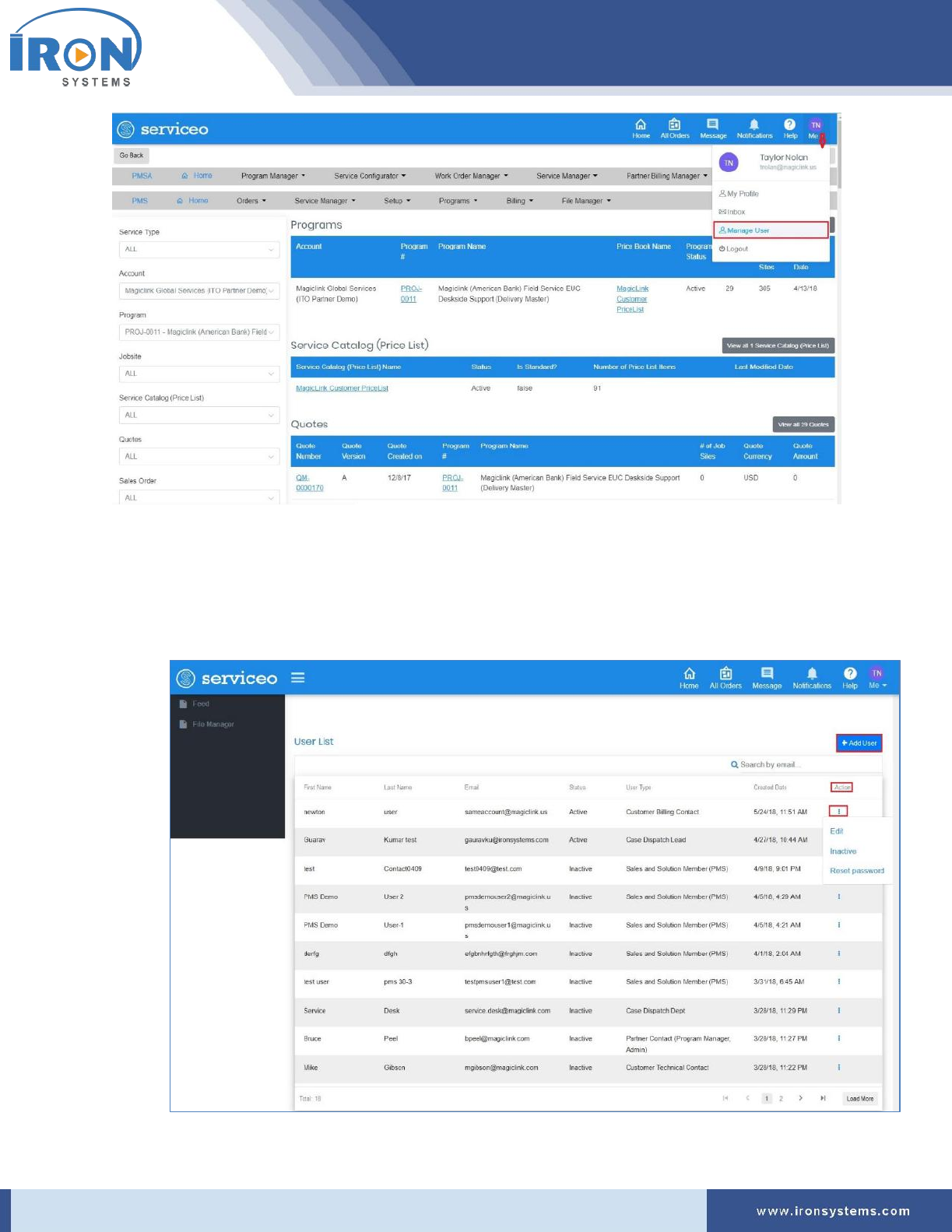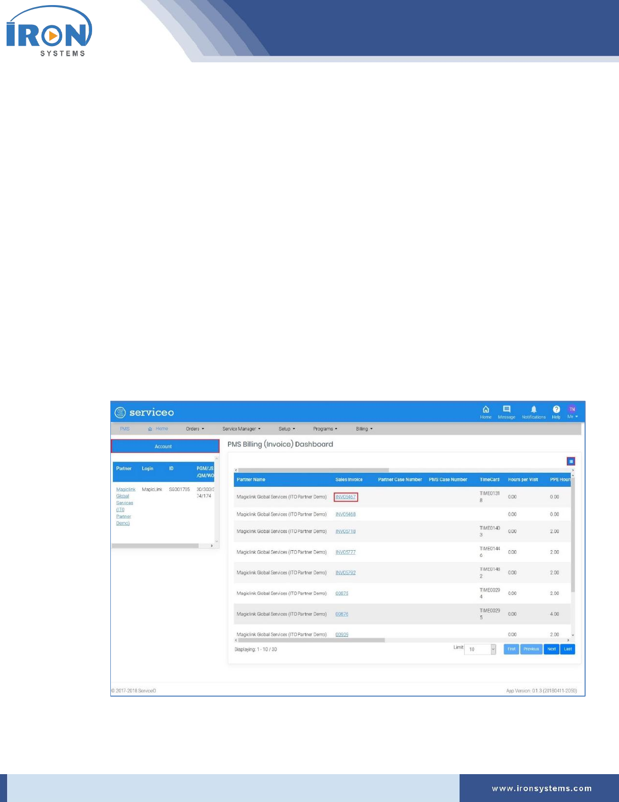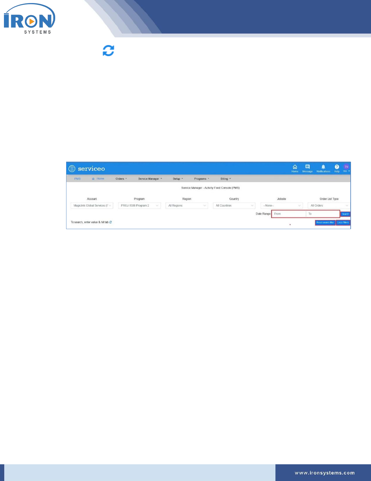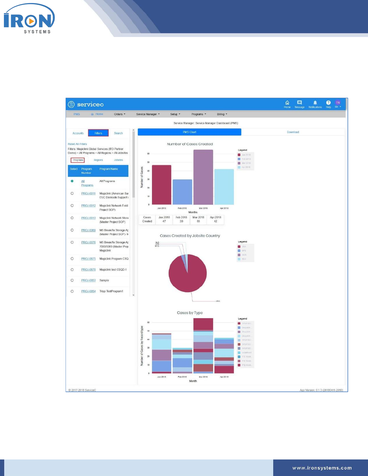 1. Click the Programs located next to the PMS Home icon and then click IRON Global Service