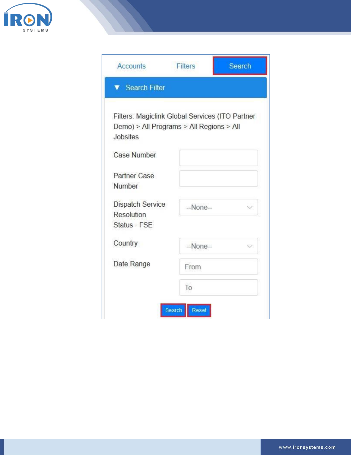 Tip: Click the Reset button in the Search Filter tab to reset the search criteria.
