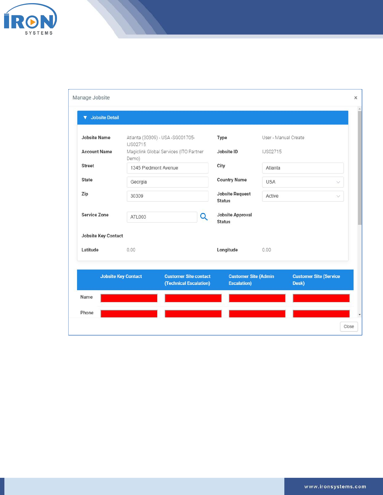 Figure 6.7: Jobsite-setup screen – Service Zone Location .......................................................................... 51