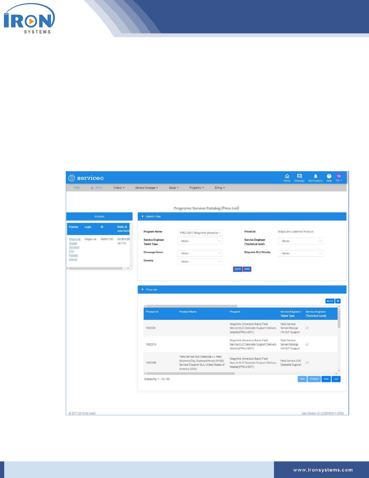 Figure 7.2: Programs: Service Catalog (Price List) screen ........................................................................... 57