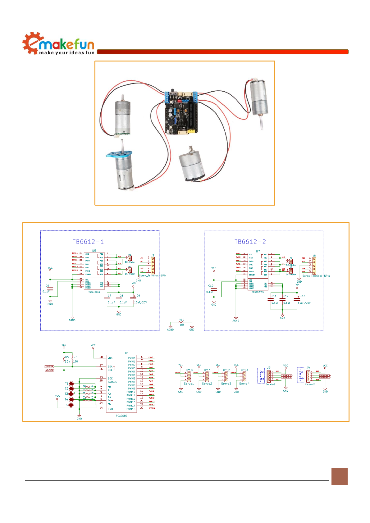 servos (two external power supplies), and drive current up to 2A. The driver board is specially designed for