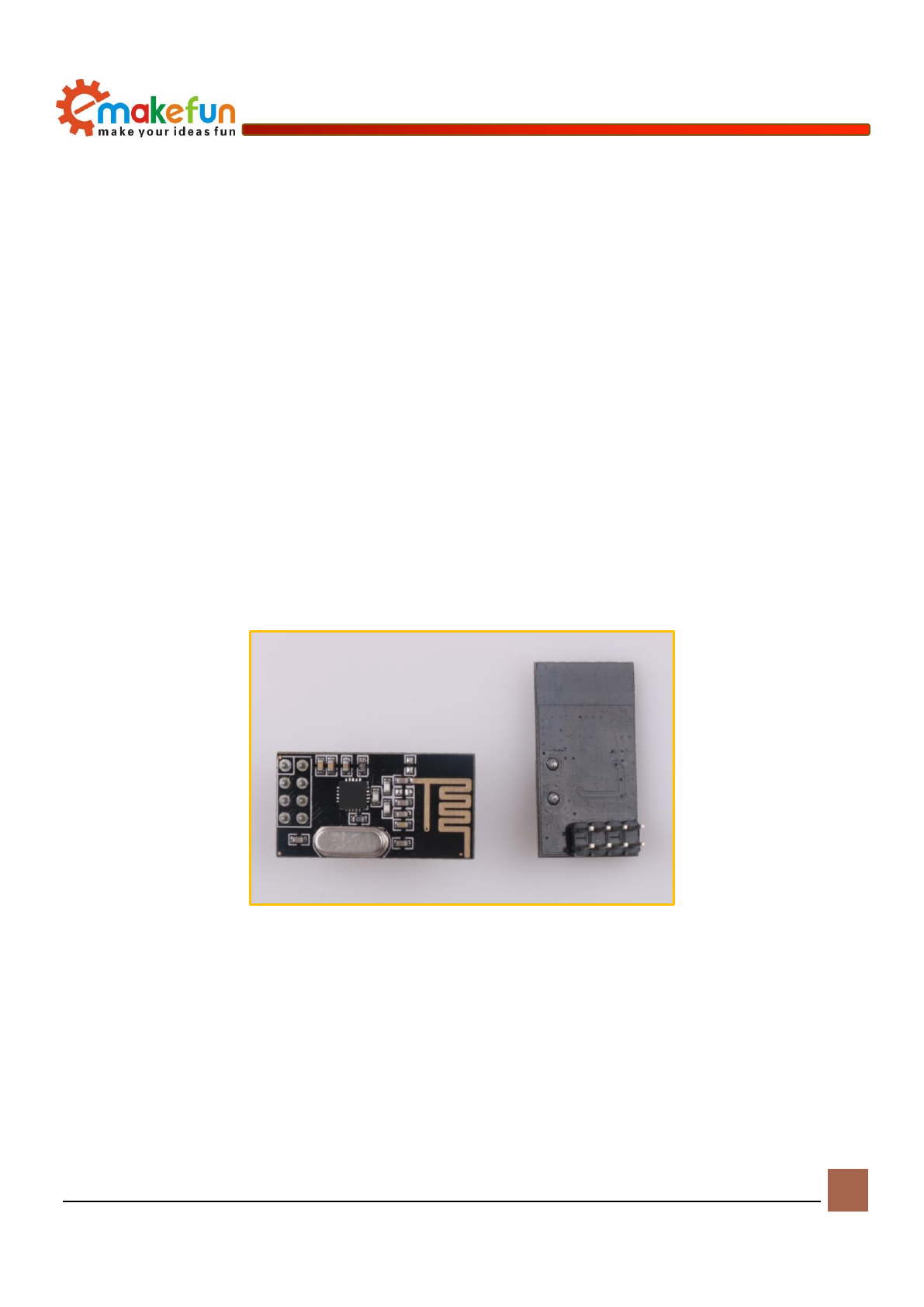 The nRF24L01+ module(as shown in Figure 13-1) is a 2.4G wireless communication module developed by