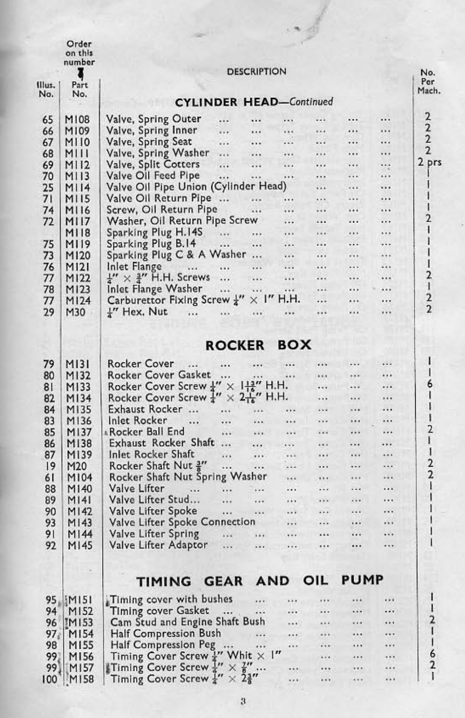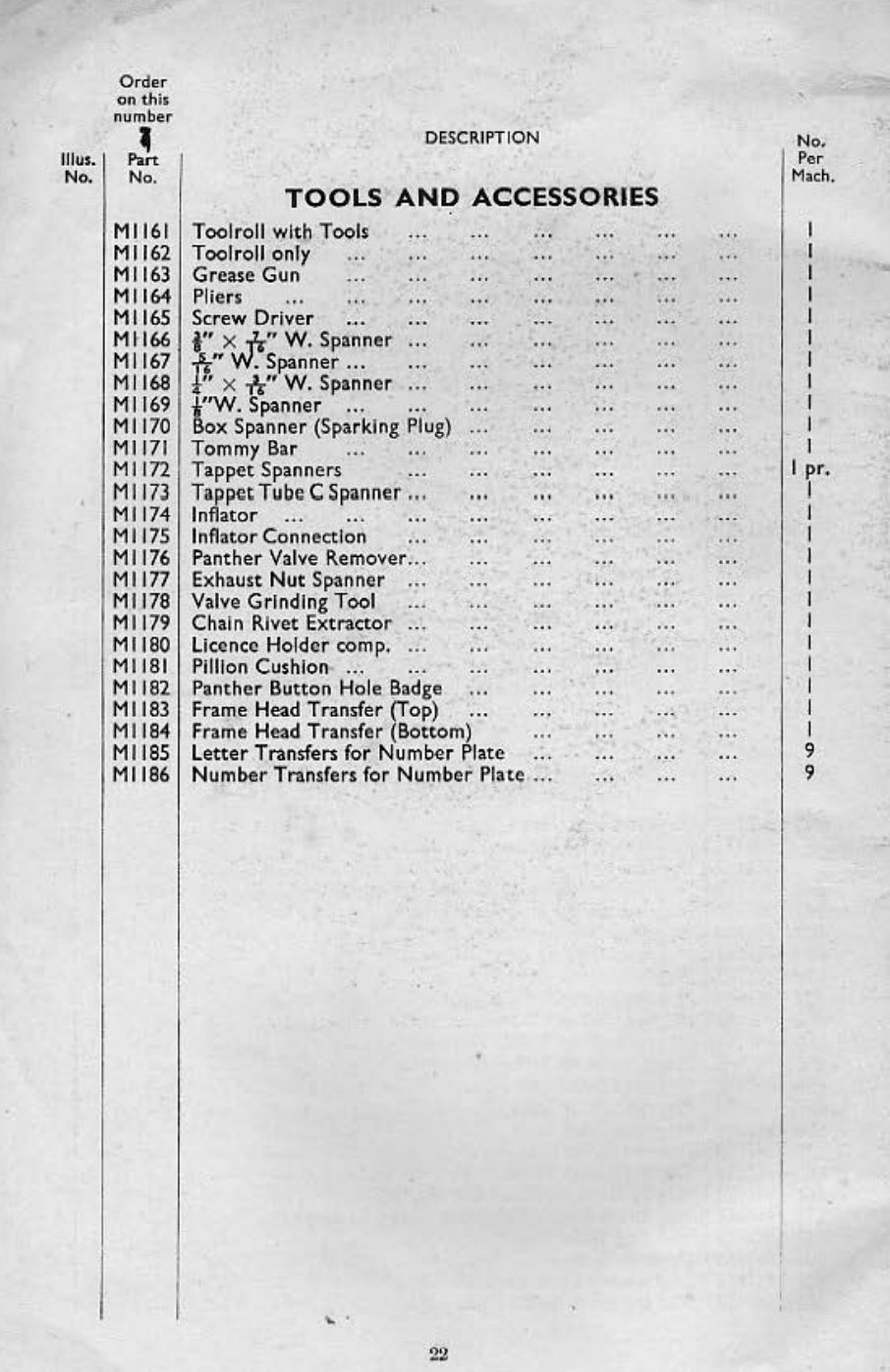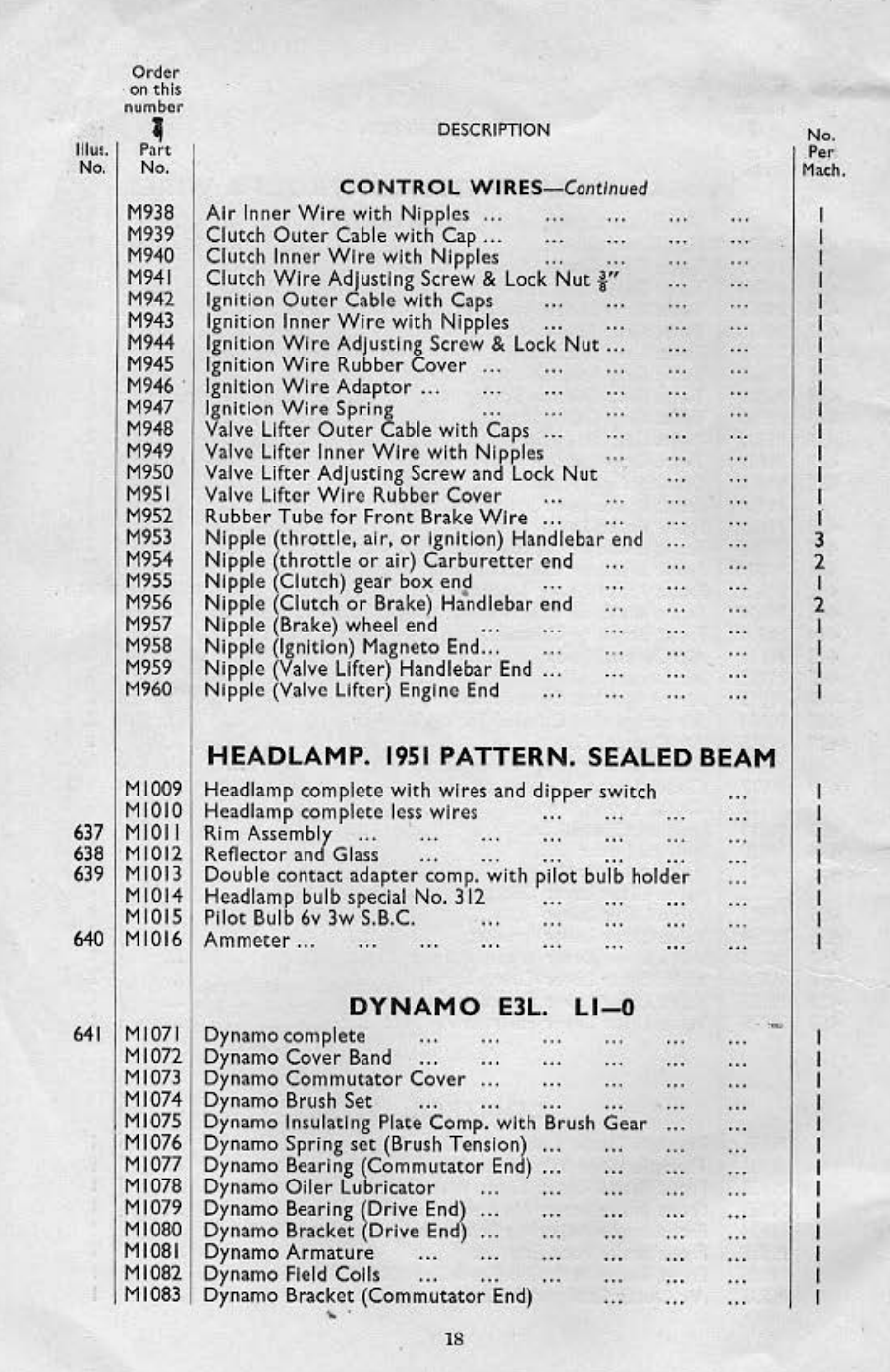Panther Motorcycle Illustrated Parts List Diagram Manual 1951 100