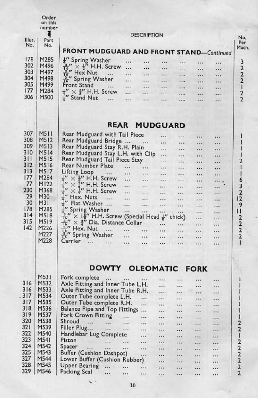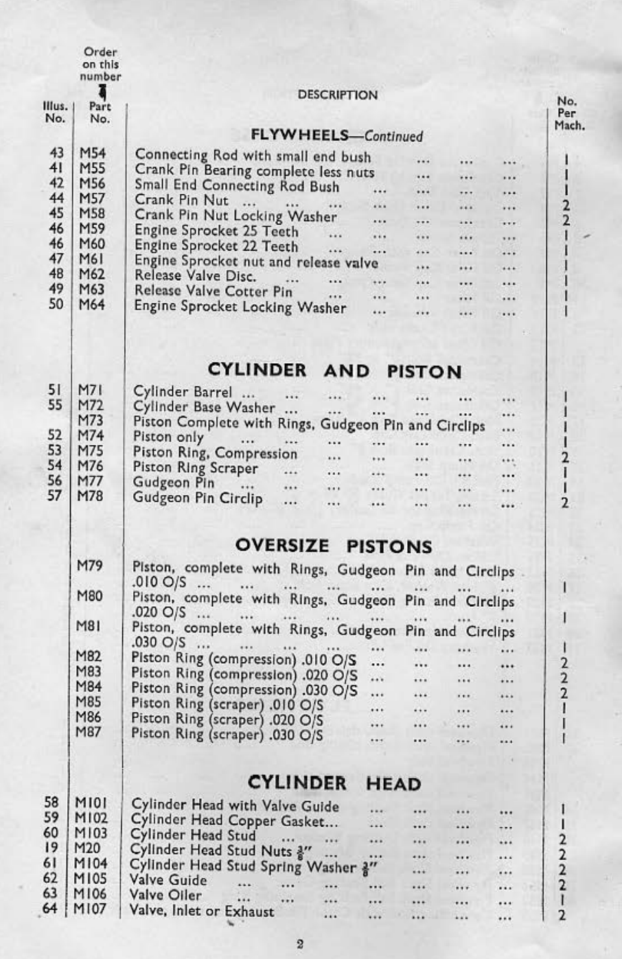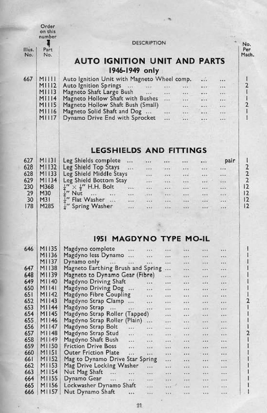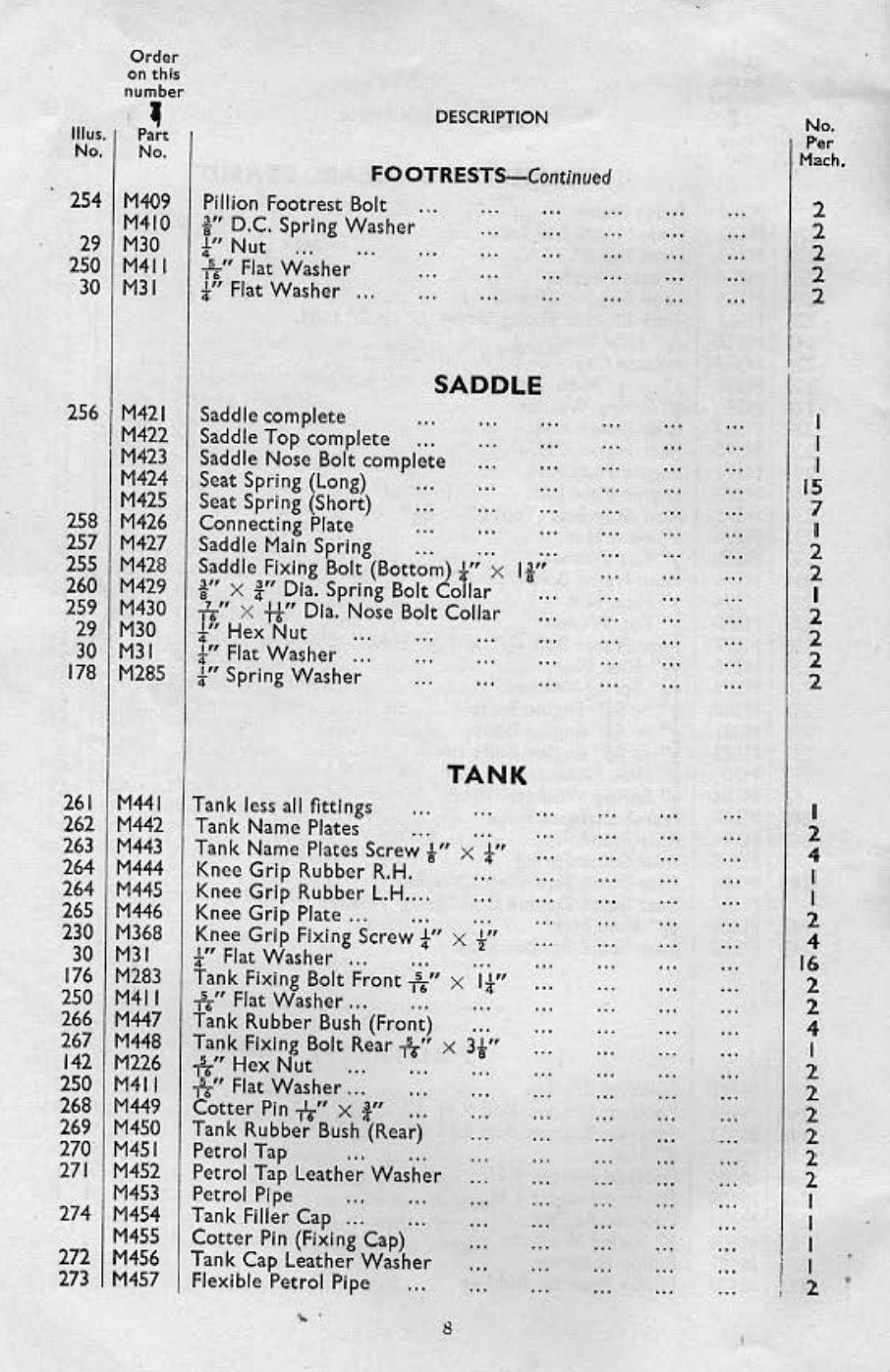 Panther Motorcycle Illustrated Parts List Diagram Manual 1951 100