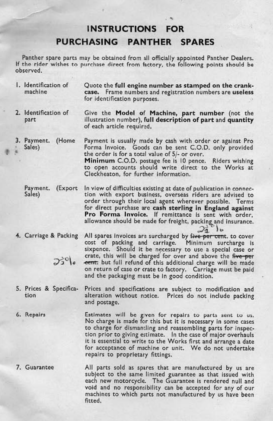 User Manual: Panther 100 Illustrated Parts List Diagram Manual 1951