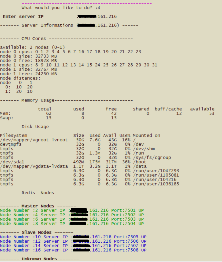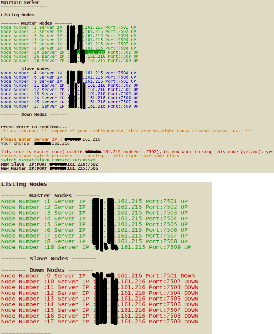 5- Maintain Server: This option shutdown all redis nodes for specific server which you want to
