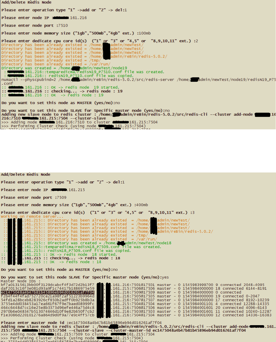 c) Add Slave Node to Specific Master: Choose 1 ( add ); Enter IP address; Enter Port ; give max