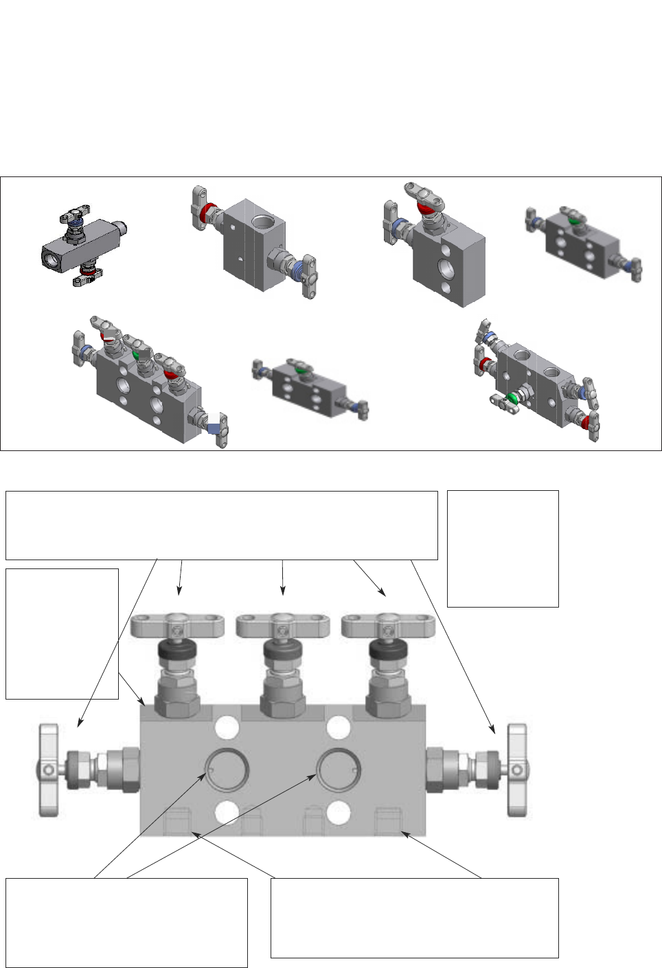 Bonnet assemblies: are all functionally colour coded, 3 valve manifolds are