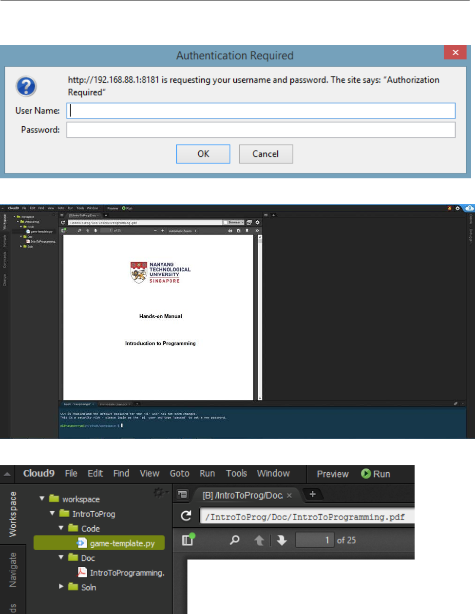 You will be prompted to enter your user name and password. Username: pi Password: raspberry