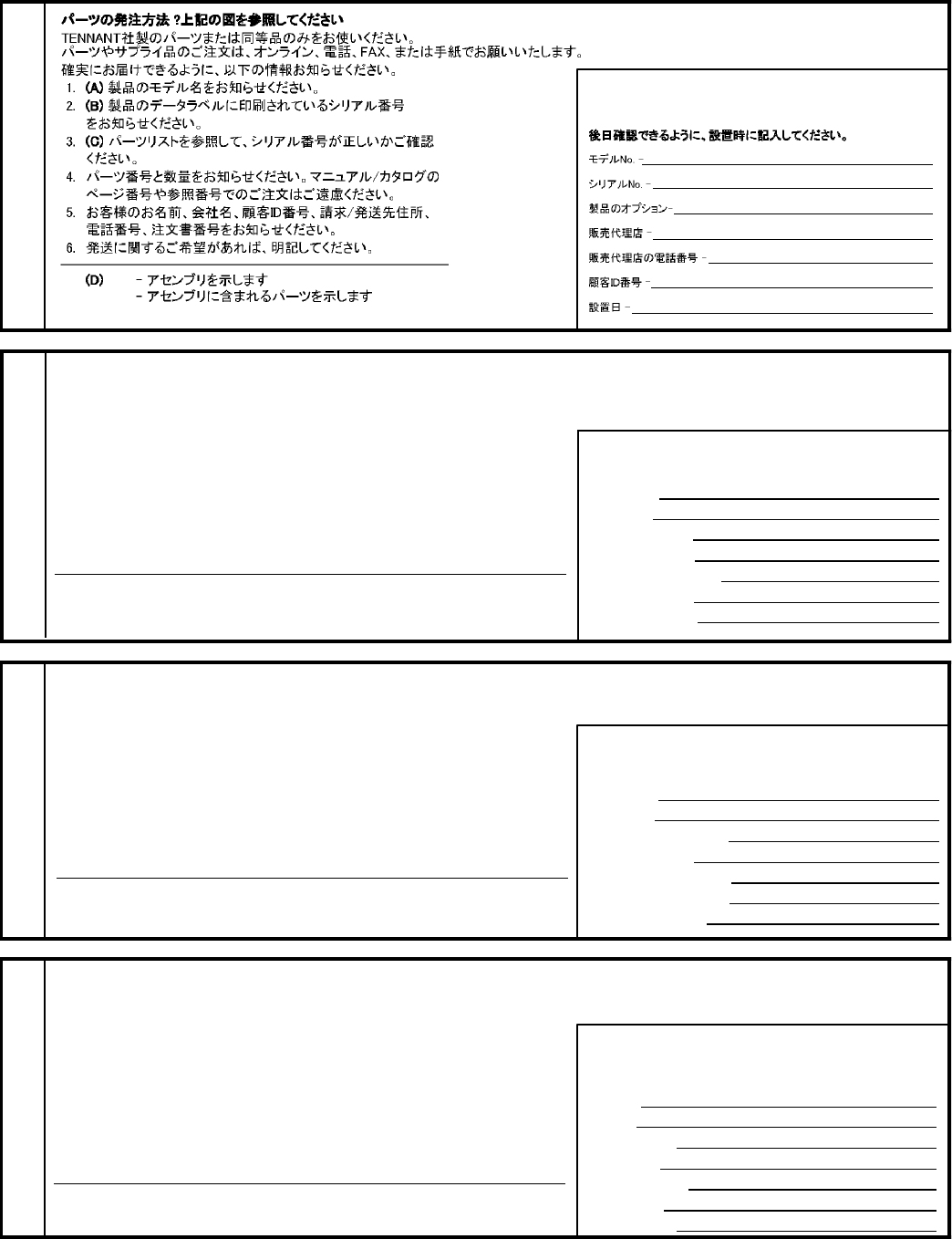 Only use TENNANT Company supplied or equivalent parts. Parts and supplies may be ordered online,