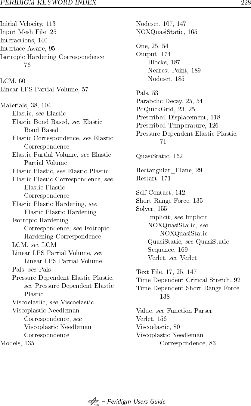- Peridigm keyword index