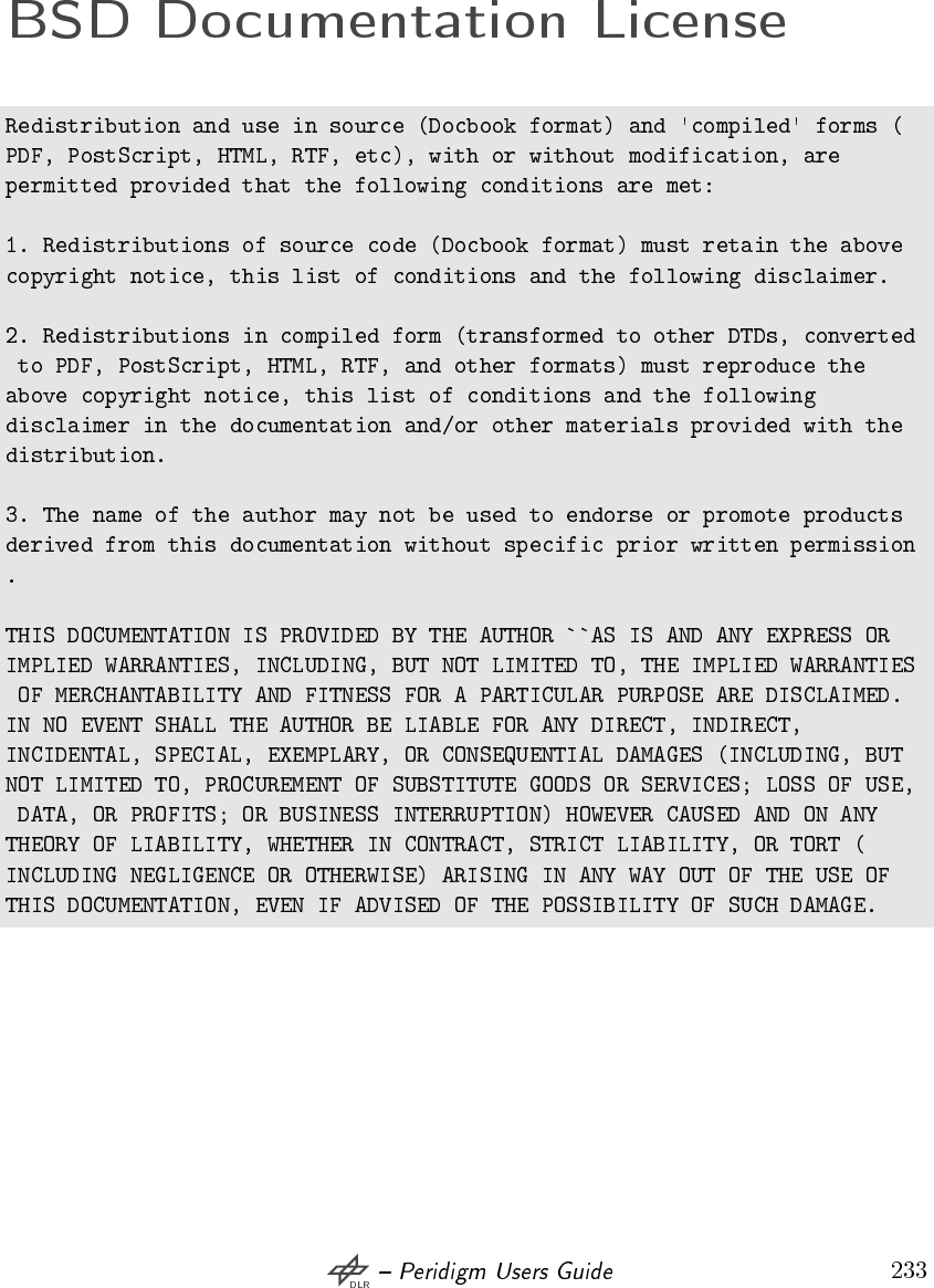 - Appendix BSD Documentation License