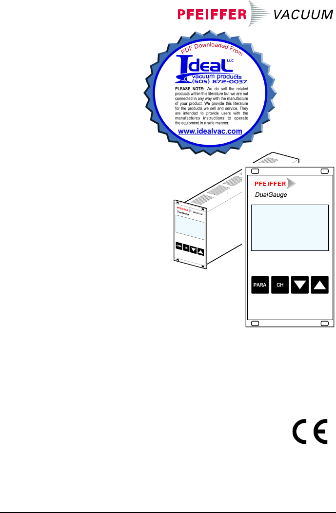 Pfeiffer, Dual Gauge TPG 262 Channel Control Unit, For Compact Gauges Pfeiffer TPG262 Operating Instructions