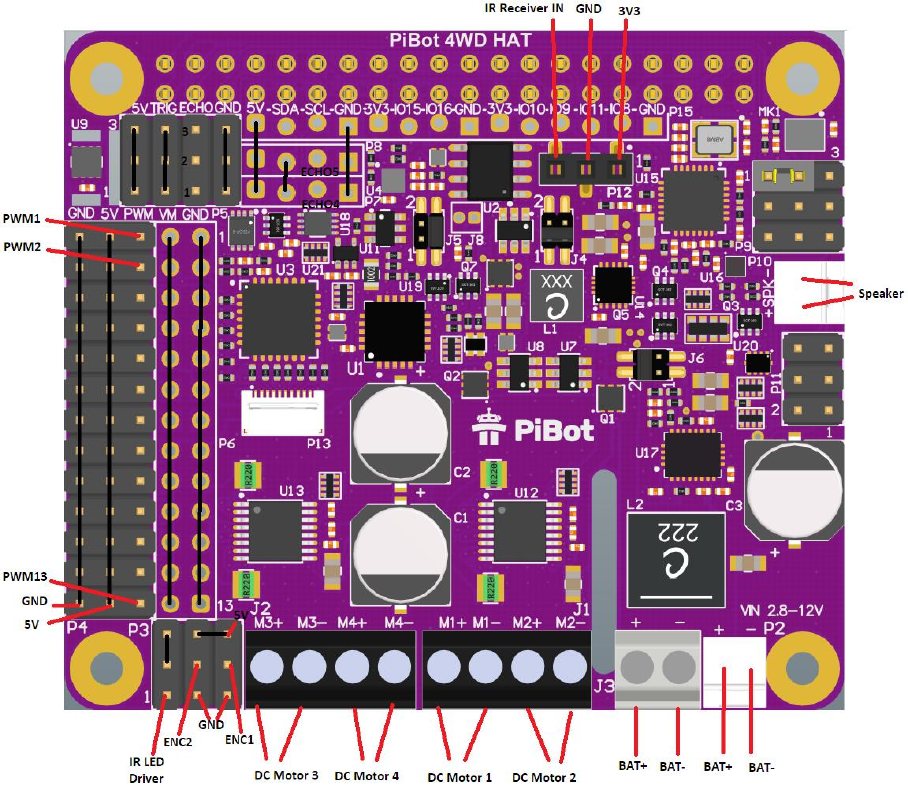 Figure 1 PiBot 4WD HAT Ports and Signals
