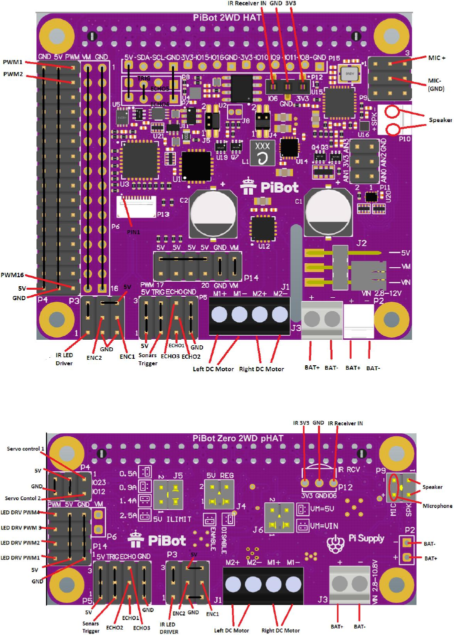Figure 2 PiBot 2WD HAT Ports and Signals