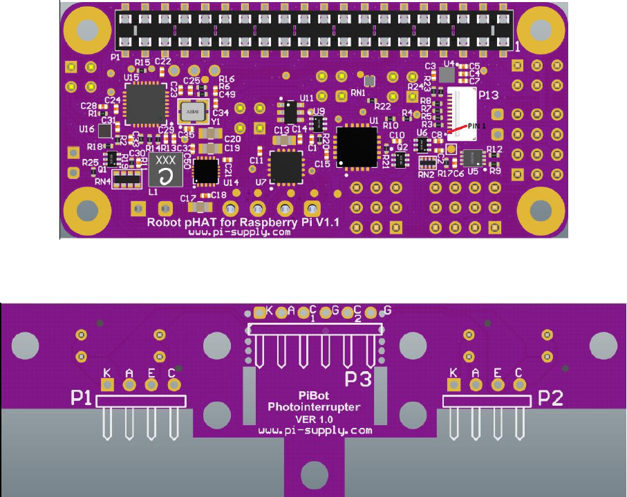 Photointerrupter board P3 header with PiBot 2WD P3 header by connecting corresponding pins from