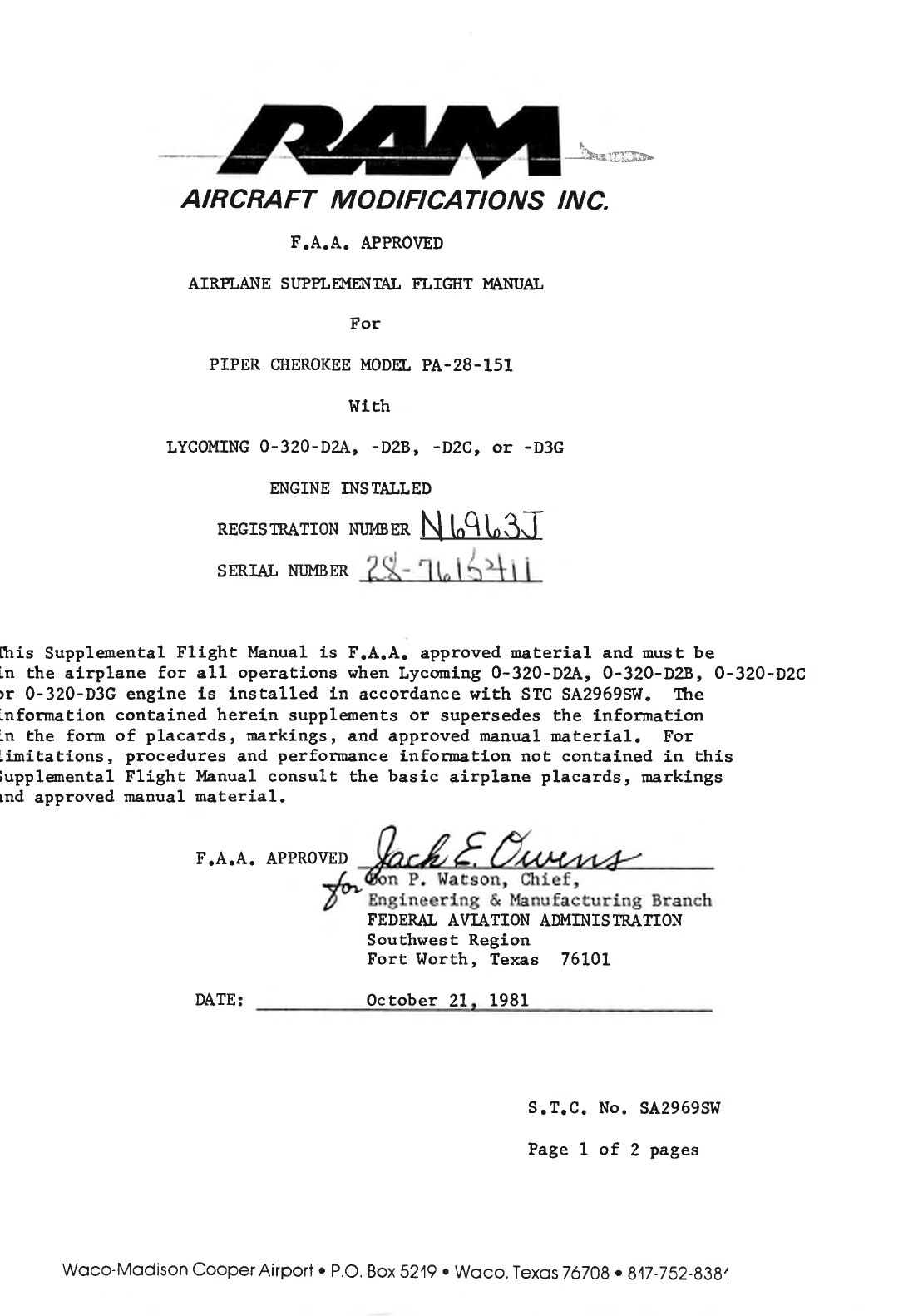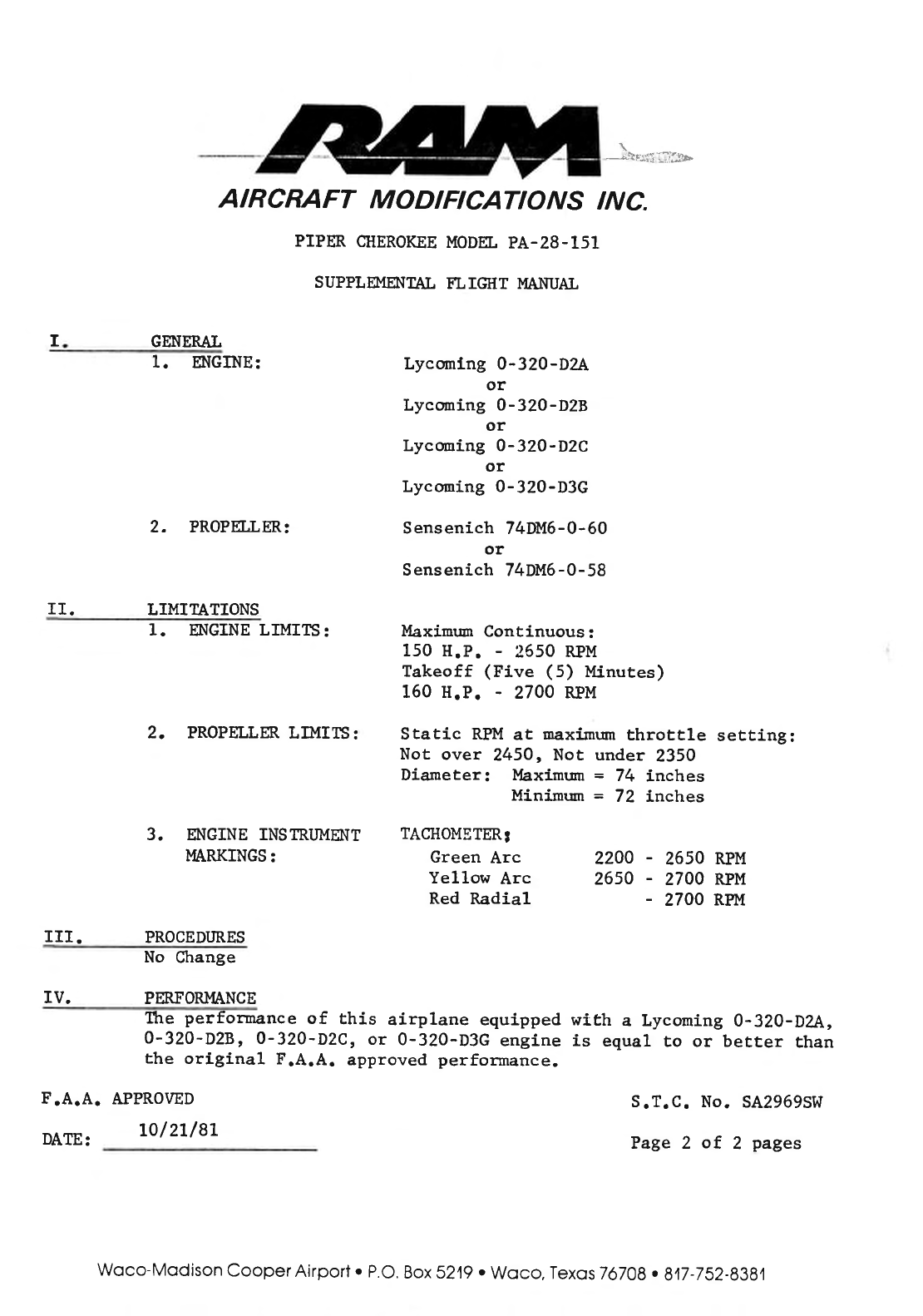 F.A.A. APPROVED