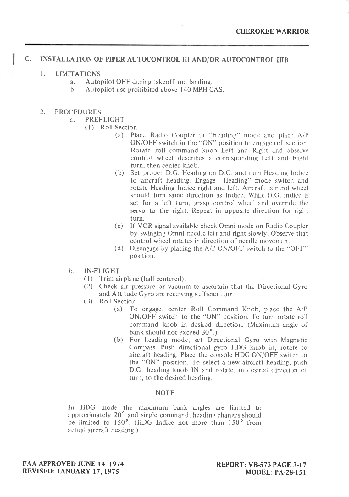 User Manual: Piper_Cherokee_PA28_151_1974