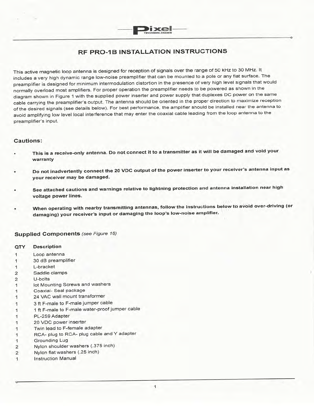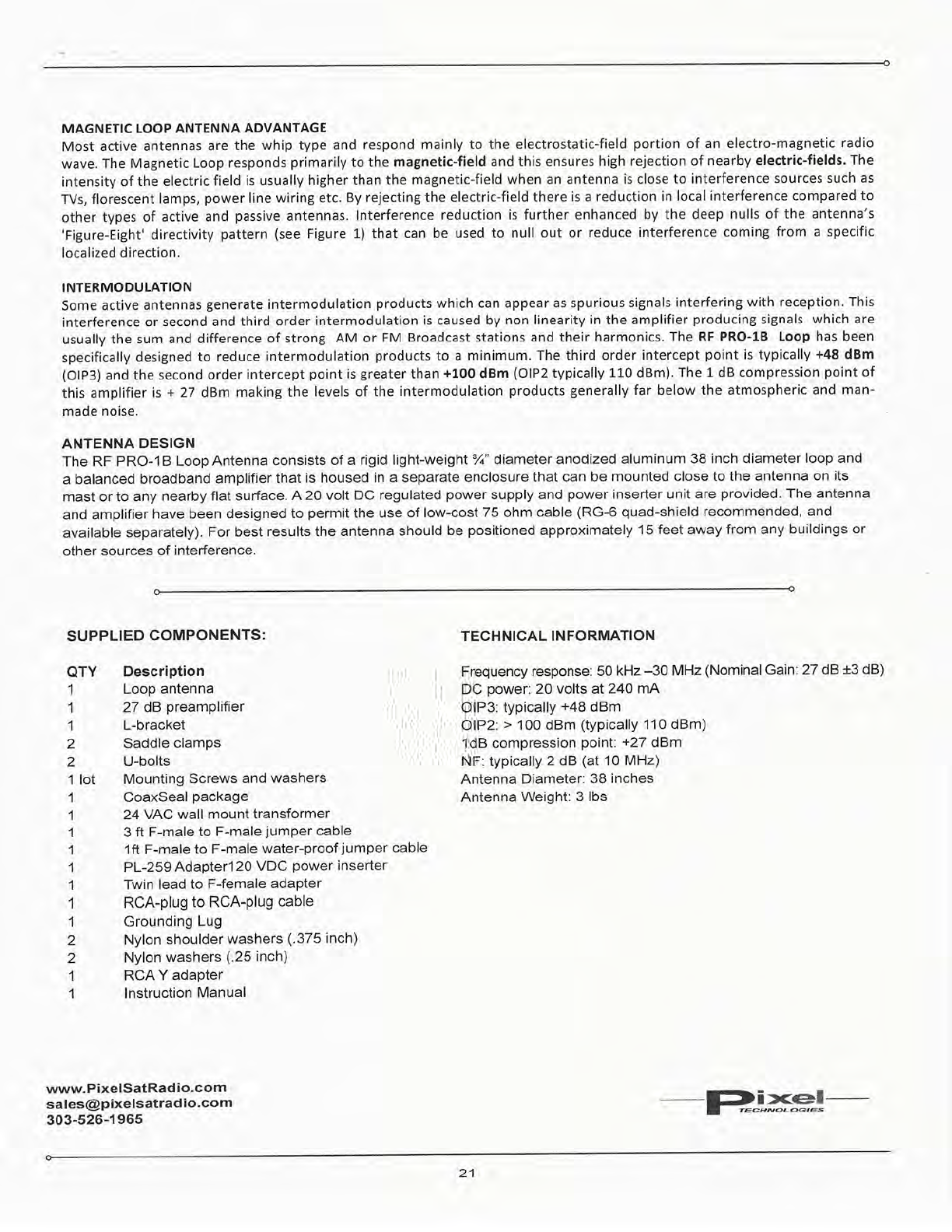 User Manual: Pixel Technologies RF Pro-1B Active Magnetic Loop Antenna Manual