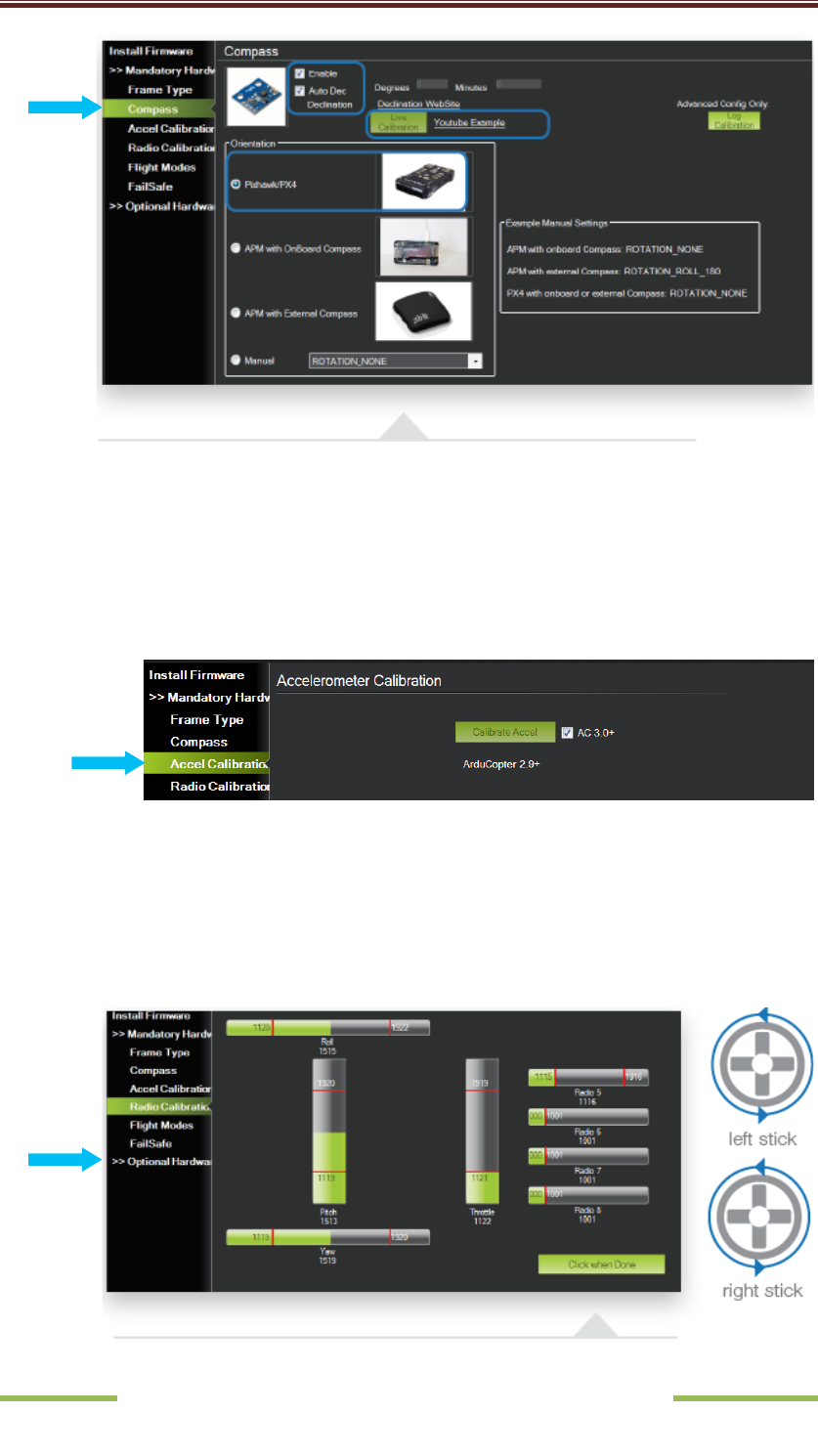 选择加载罗盘选项;自动计算磁偏角;并且指定好 PIXHAWK2.1。选