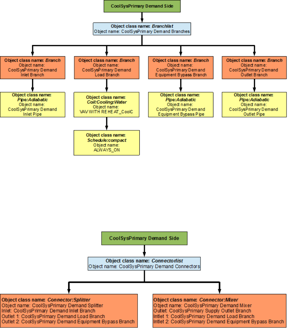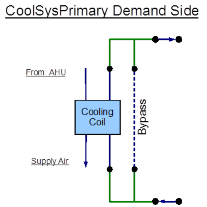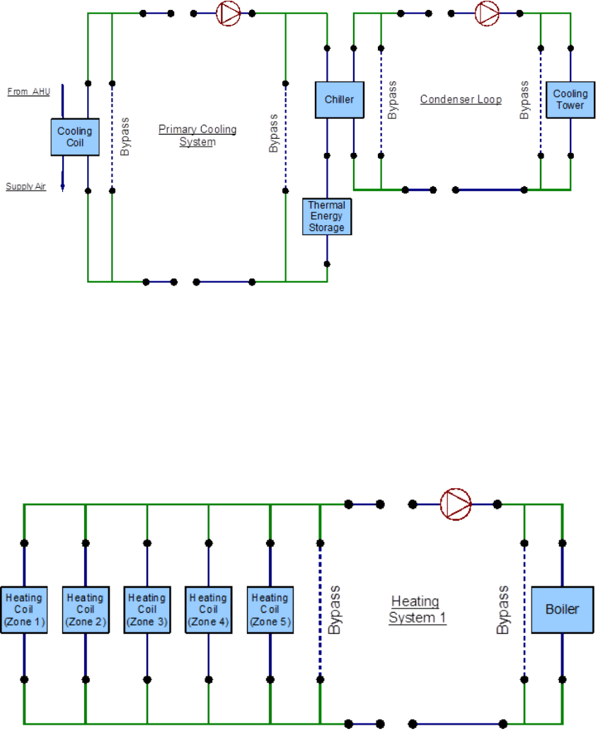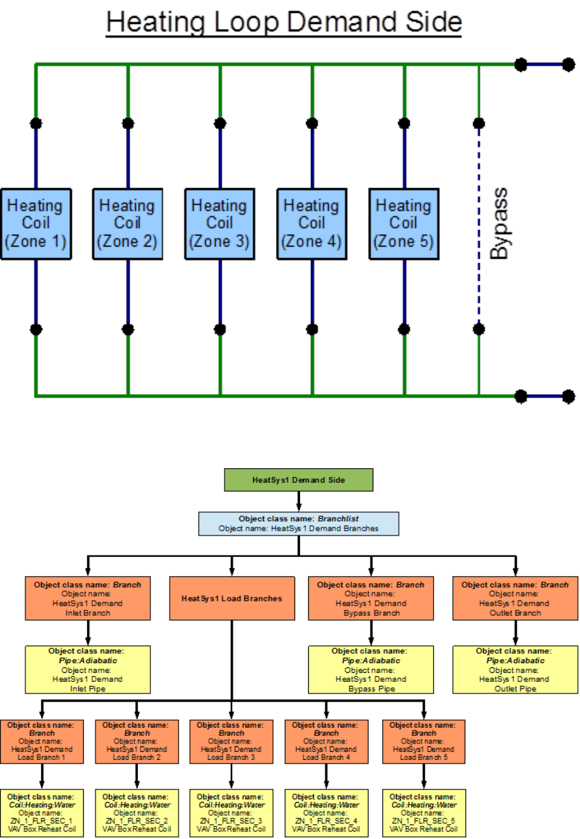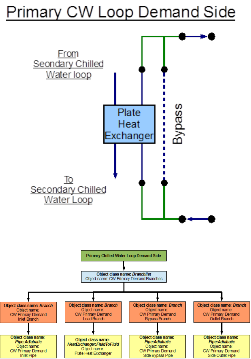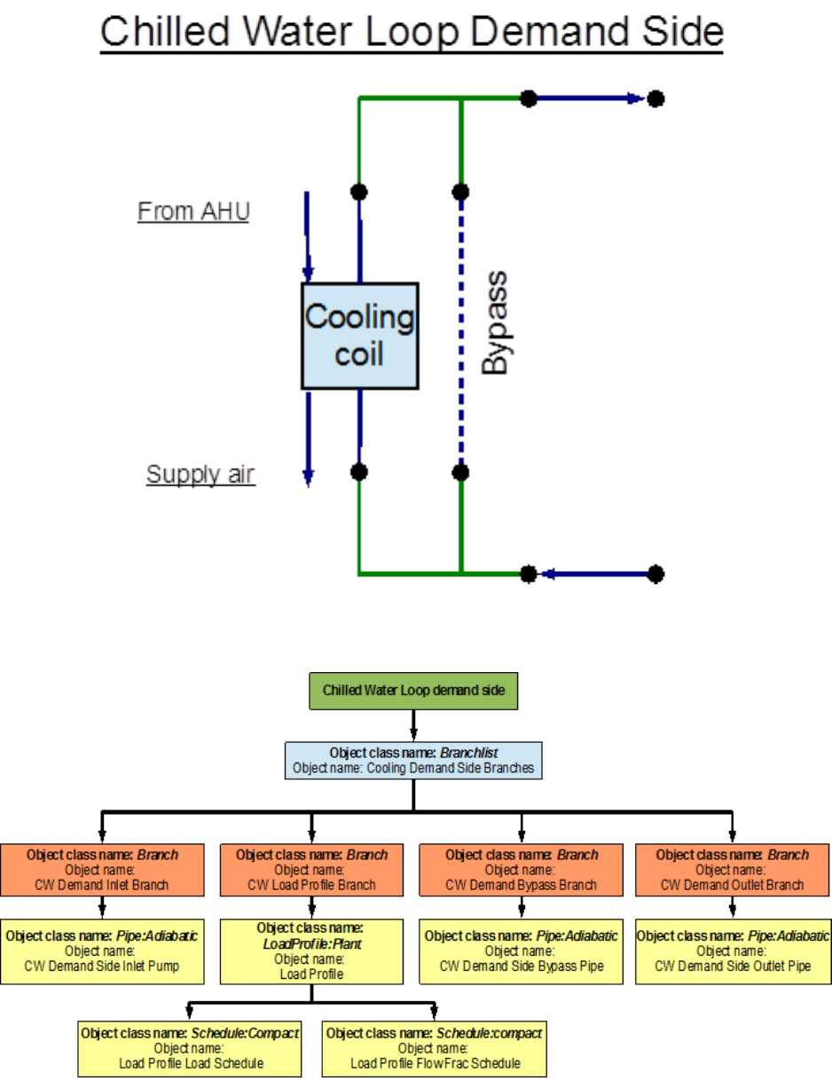 An EnergyPlus schematic for the demand side is provided in Figure 8.36. The owchart for