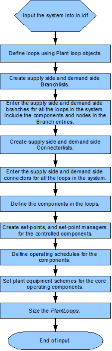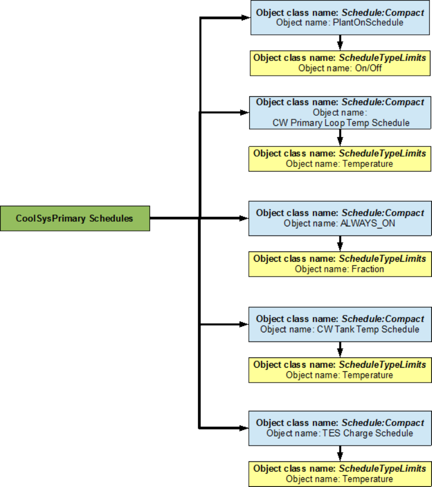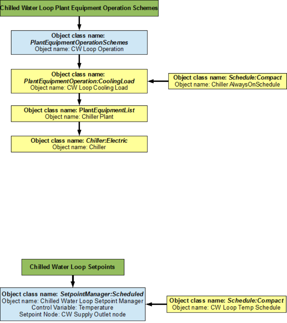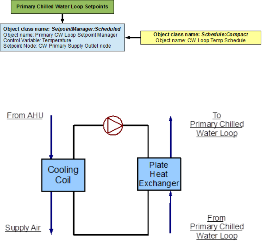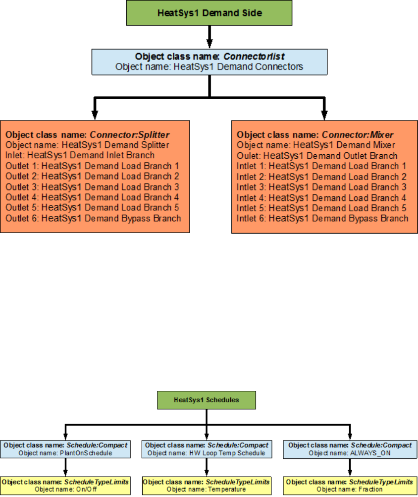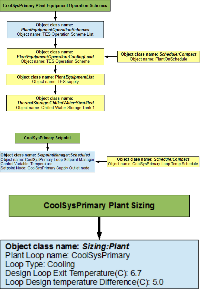 An EnergyPlus schematic for the demand side is provided in Figure 8.36. The owchart for