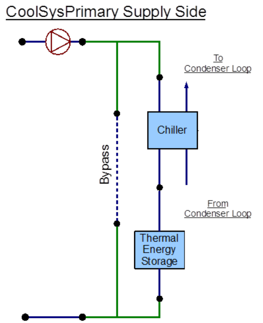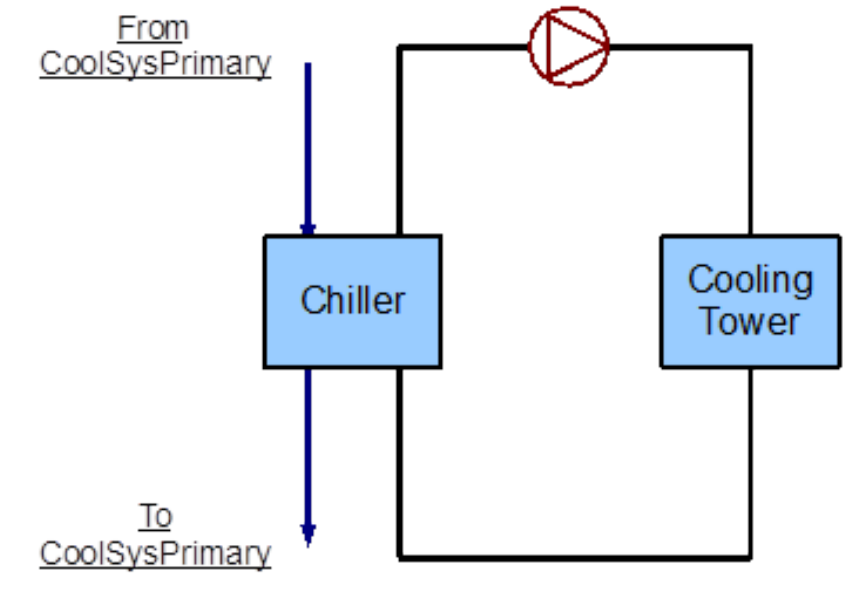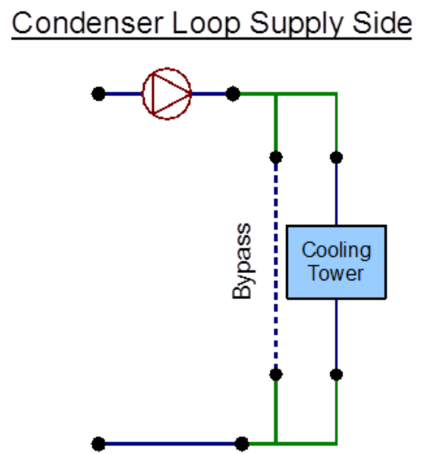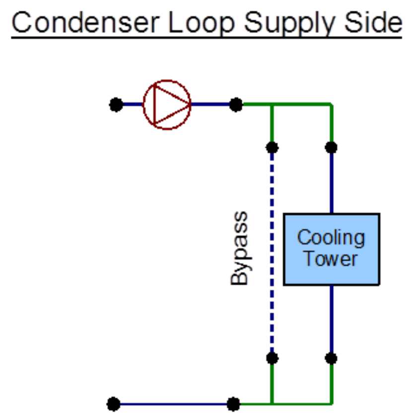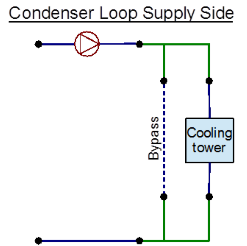Figure 8.33: EnergyPlus line diagram for the supply side of the Condenser Loop